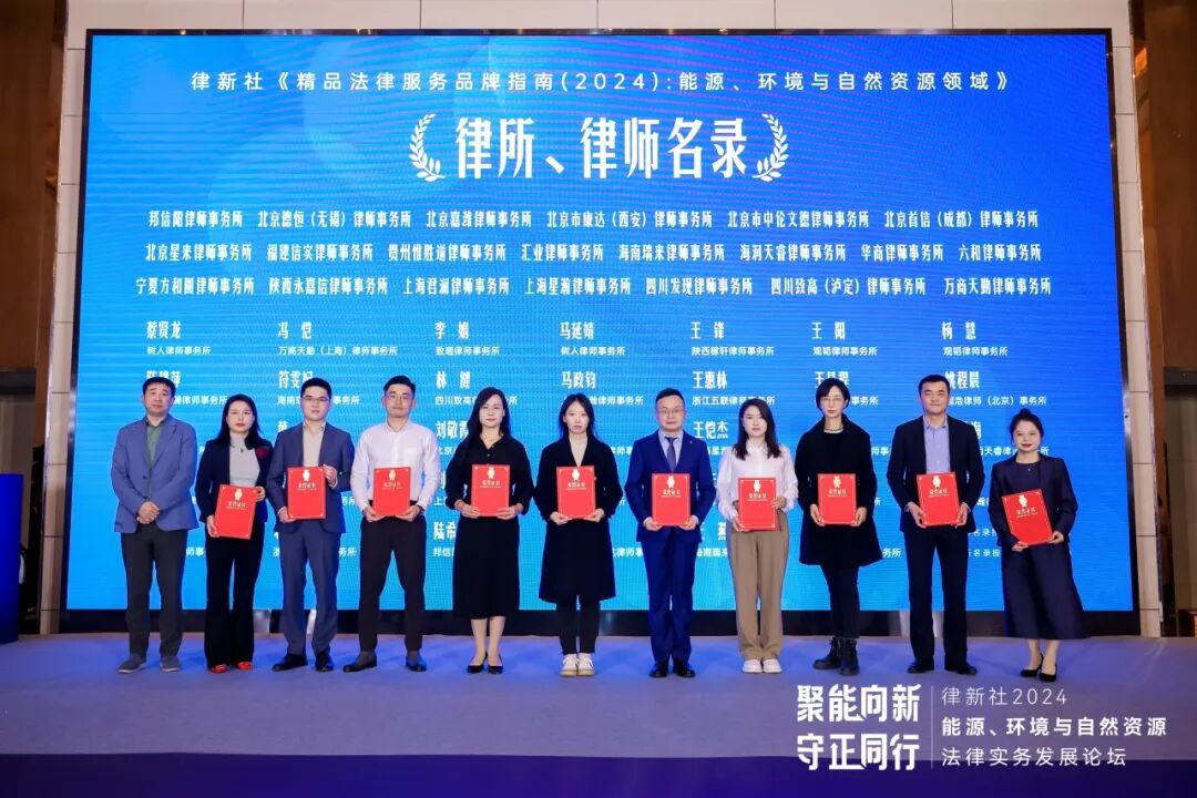 在现场嘉宾和线上观众的共同见证下,“律新社2024年度能源、环境与自然资源领域品牌影响力律所”“律新社2024年度能源、环境与自然资源领域品牌之星(领先律师、实力律师、匠心律师、新锐律师)”“律新社《精品法律服务品牌指南(2024):能源、环境与自然资源领域》律所、律师名录”隆重发布。