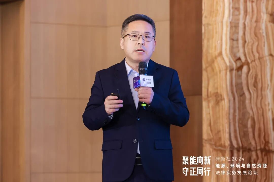 上海市企业法律顾问协会副会长,上海市工业经济、经济团体联合会法治专委会秘书长熊晨曜在致辞中指出,《能源法》不仅确立了市场配置能源资源的基本制度,还促进了竞争性环节的市场化改革,为构建统一开放、竞争有序的能源市场体系奠定了基础。面对当前能源需求压力大、供给制约和技术水平提升的需求,熊晨曜认为,结合新法深入探讨能源法治变革十分必要。此外,他还提出了市场经济作为能源转型契机的观点,认为只有通过市场机制才能真正激活能源产业的技术进步和效率提高。同时,他还指出了资本转型对能源转型的关键作用,并强调制度转型为这一过程提供必要的秩序和土壤。熊晨曜进一步强调,为了确保《能源法》的成功实施,企业需将绿色法治理念贯穿于整个生产经营过程中,并加强对外能源法律服务的合作。