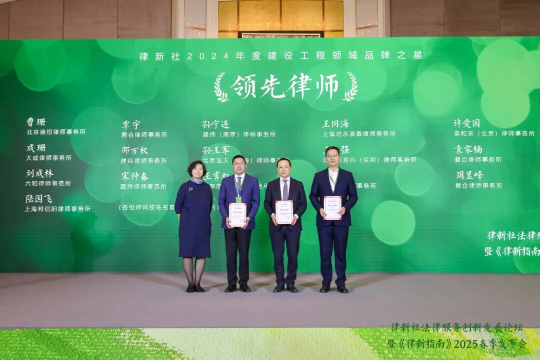 上海市建纬律师事务所创始主任、建纬研究院院长朱树英荣获“律新社2024年度建设工程领域品牌之星:卓越律师”