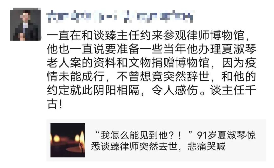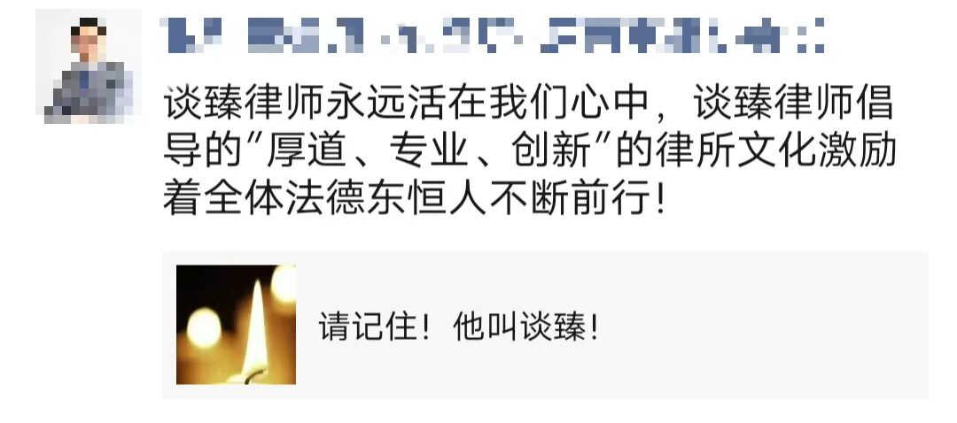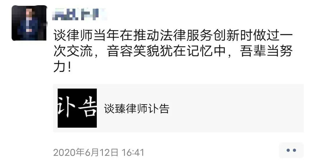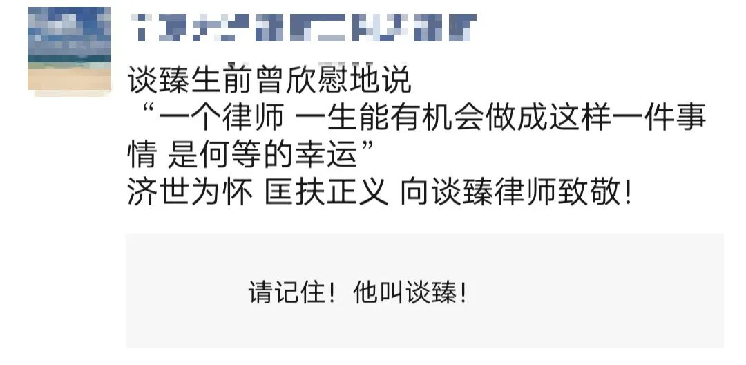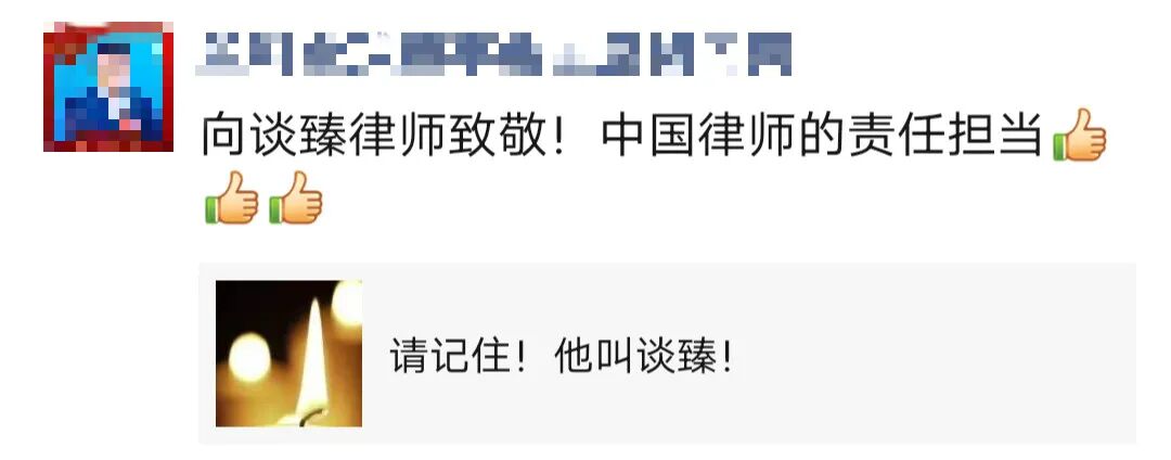 这一举动,再次激起了阵阵回响,律新社在朋友圈看到,法律各界人士都纷纷对谈臻律师表达了缅怀之情。