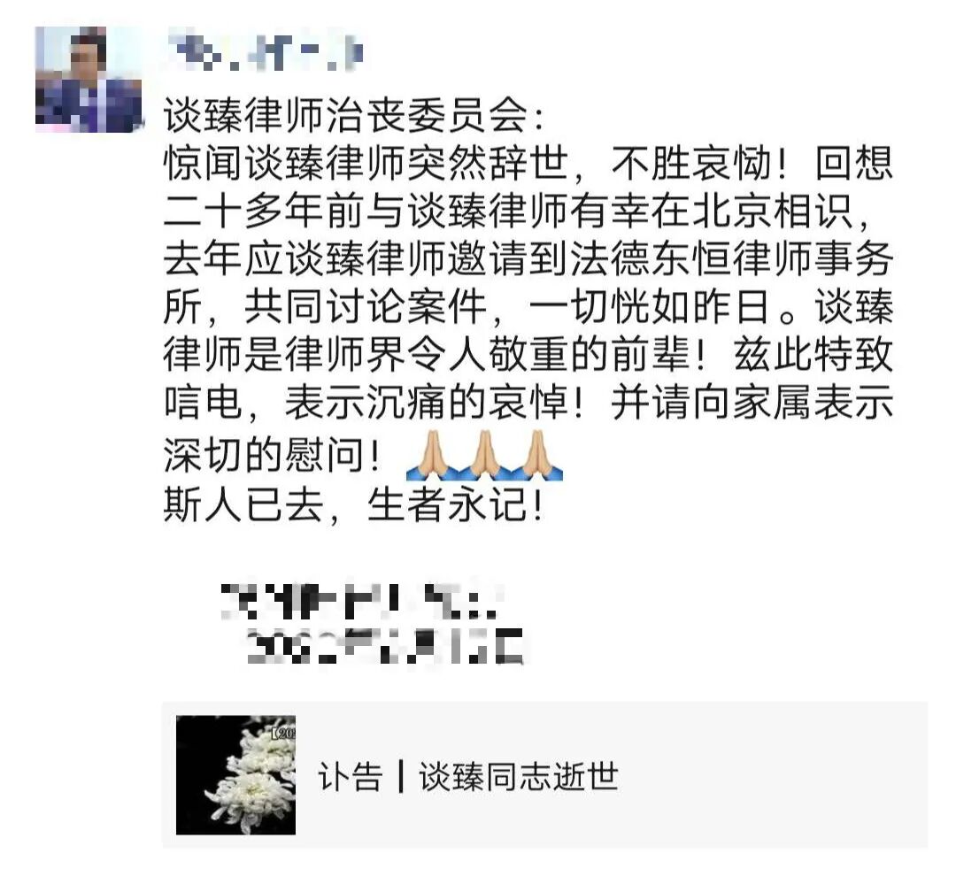 律新社与大家分享此文,一起缅怀谈臻律师。