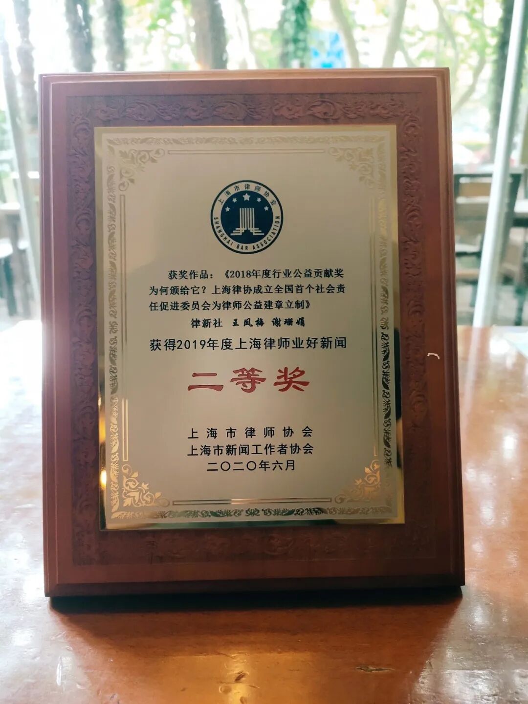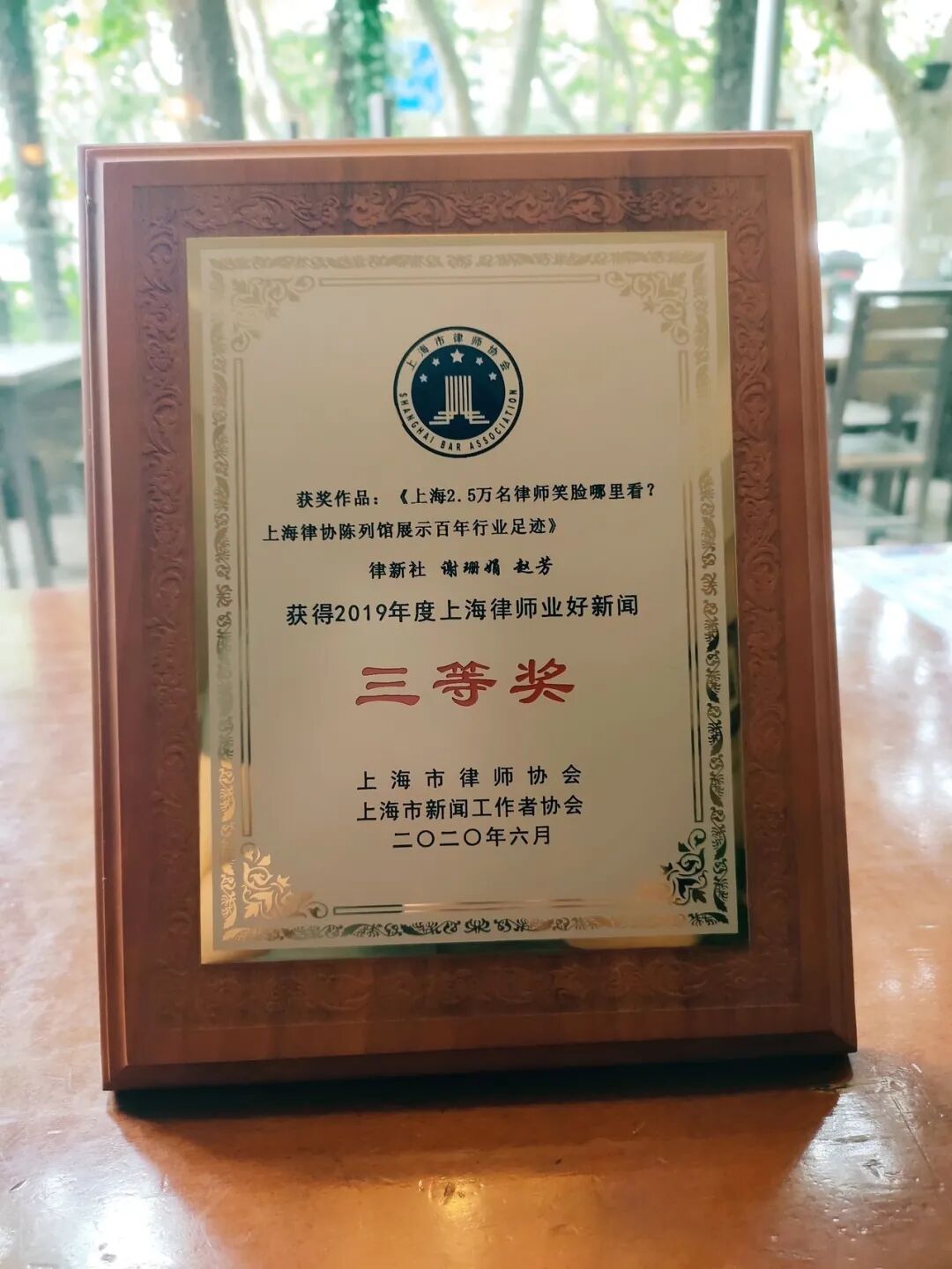 其中,律新社两篇新闻作品《2018年度行业公益贡献奖为何颁给它?上海律协成立全国首个社会责任促进委员会为律师公益建章立制》《上海2.5万名律师笑脸哪里看?上海律协陈列馆展示百年行业足迹(附视频)》分别获得“2019 年度上海律师业好新闻”二等奖、三等奖。