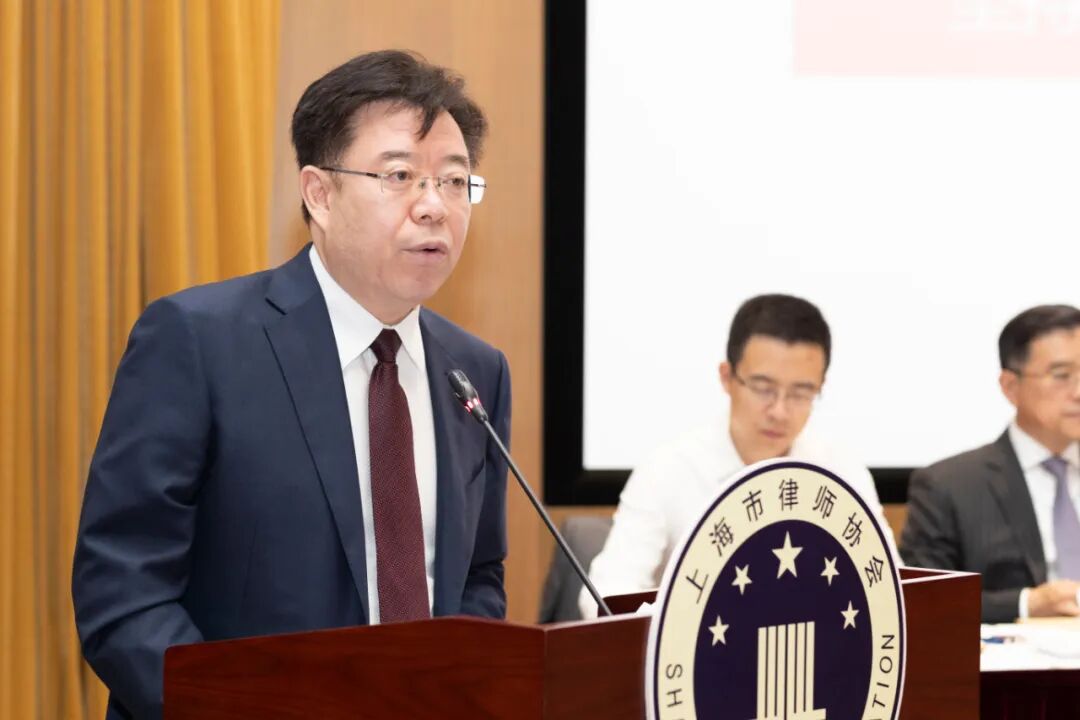 上海市司法局党委书记、局长陆卫东在发言中对上海律师业、上海律师在抗疫期间的工作表示充分肯定,上海律师积极履行社会责任,展现了其责任担当和家国情怀。当前,全面依法治国、依法治市进入新阶段,疫情给全球经济带来冲击,上海律师业如何推进经济发展至关重要。