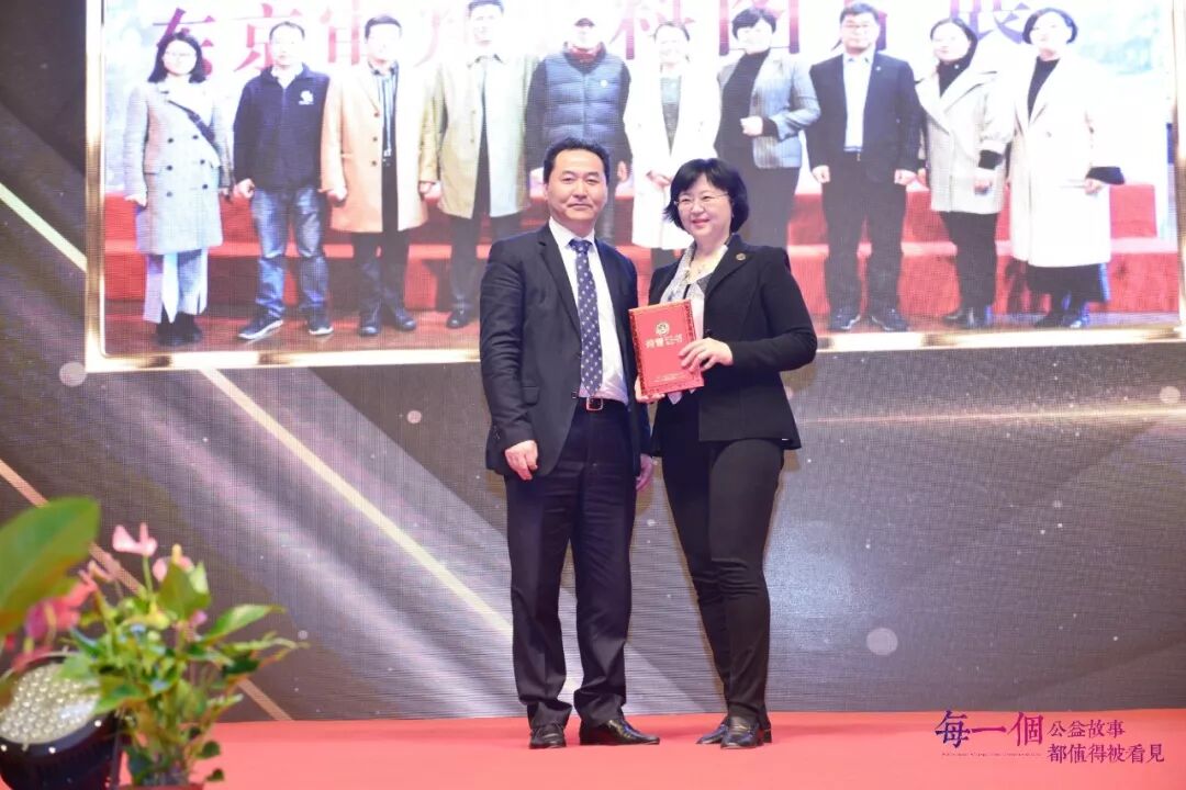 上海市慈善基金会副理事长、上海市法学会慈善法治研究会会长张凌为“2018年度优秀公益项目奖”获奖者颁奖。