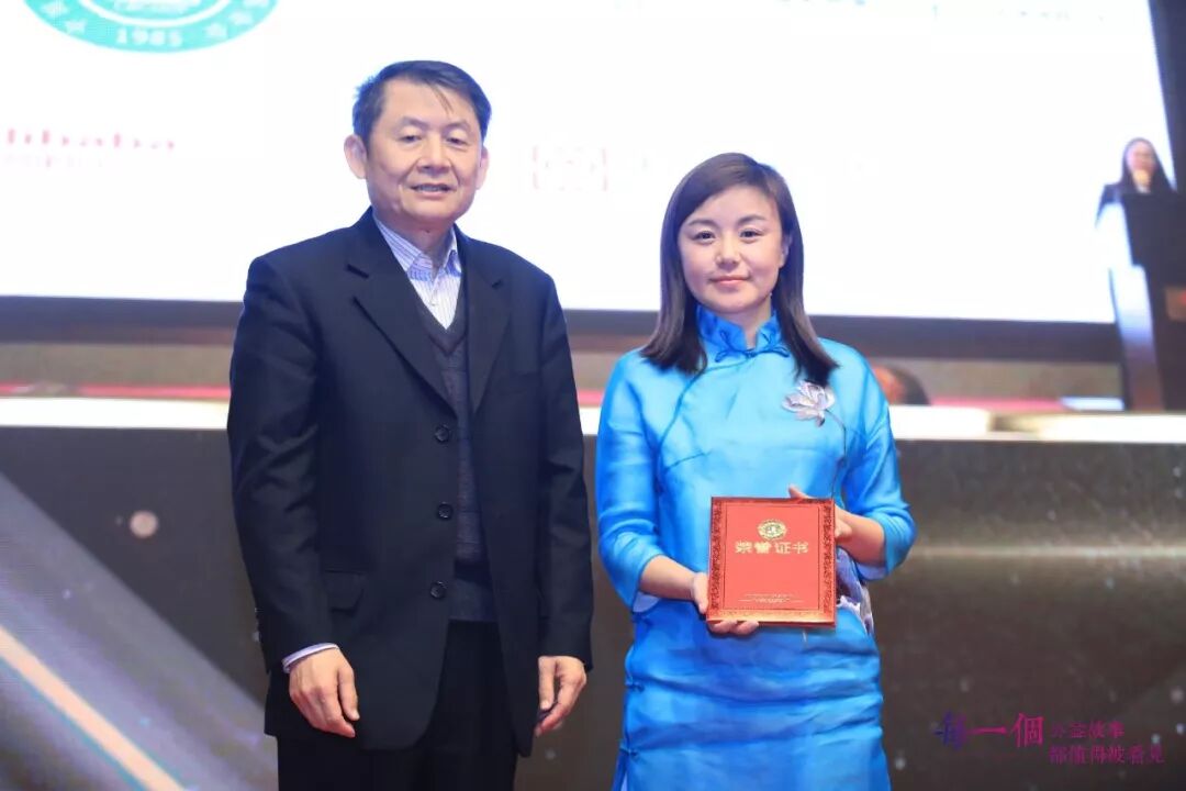 颁奖人:上海市慈善基金会副理事长、上海市法学会慈善法治研究会会长 张凌(左)