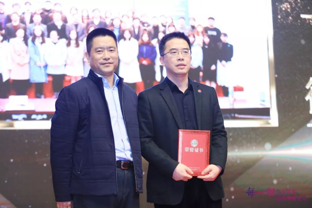 徐汇区政法委副书记、徐汇区法学会会长吴寅飞和上海交通大学凯原法学院副院长程金华为“2018年度公益人物奖”获得者颁奖。