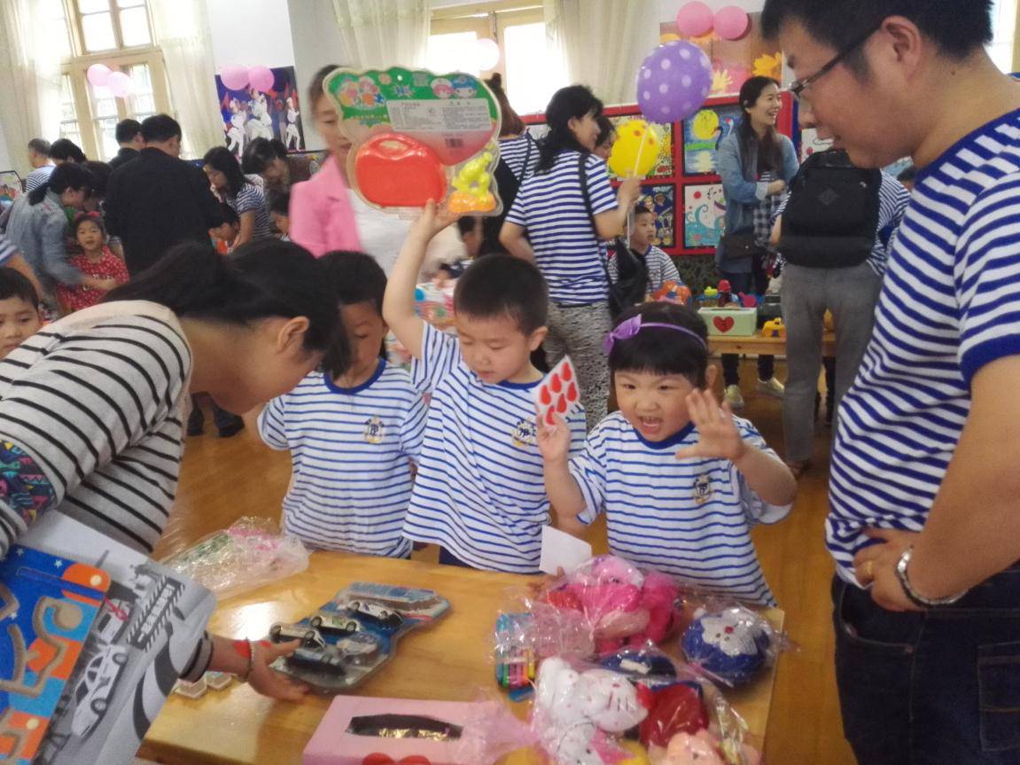 早晨雨很大,可幼儿园中班的小朋友们在爸爸妈妈的陪伴下,都早早来到了活动现场。他们按照班级分组纷纷在自己的摊位上,摆出精心准备的宝贝,有的是崭新的文具或玩具,有的是看过的绘本或用过的乐器,还有的是自己动手制作的小物件……