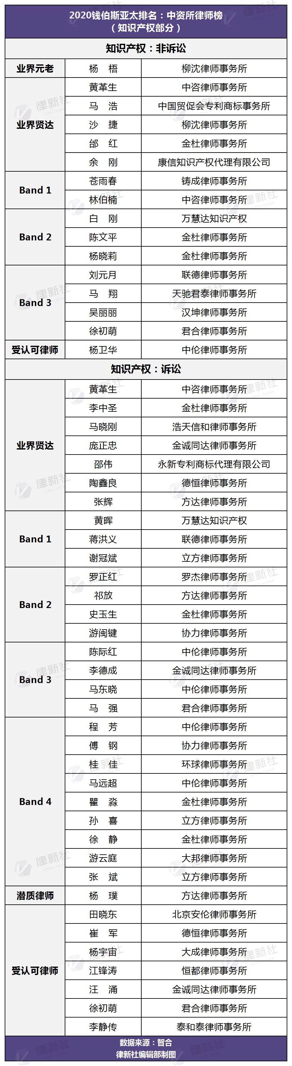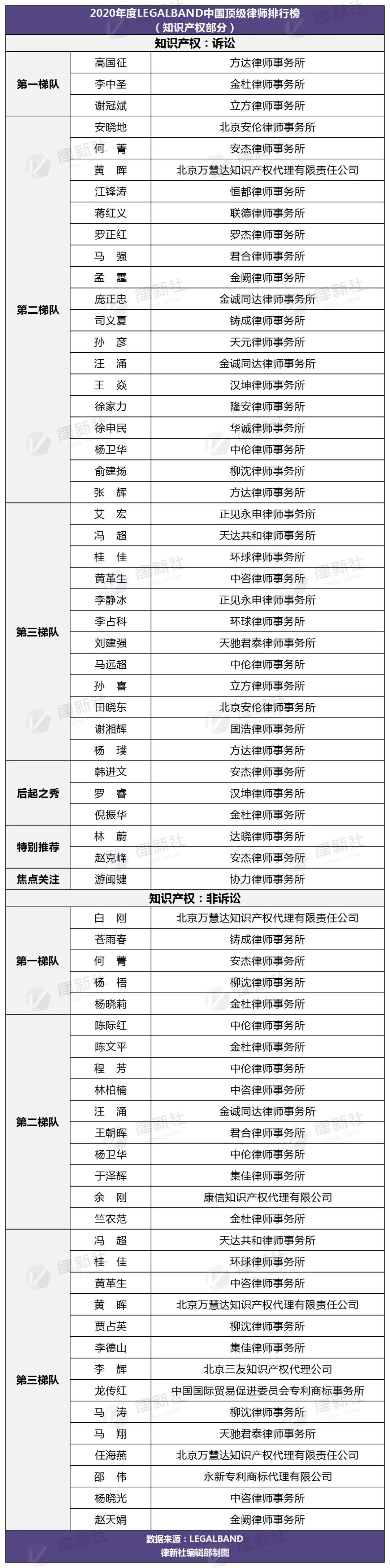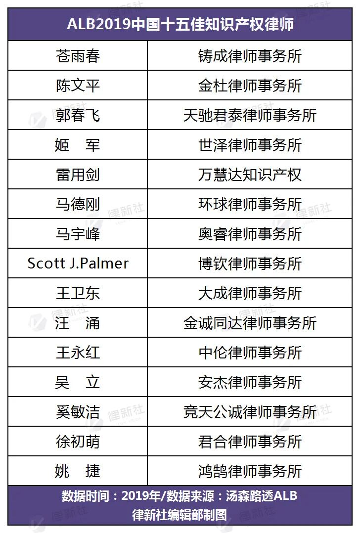 知识产权是一面镜子,照出过去,照向未来。随着知识产权成为国际交流的重要工具,并成为国际交往和国际商务的“流通货币”,我国的知识产权保护与交易必将成为法律领域中最重要的板块。当我们遇到知识产权被侵犯时应该怎么做?找律师!律新社整理了ALB、LEGALBAND、钱伯斯等著名法律评级机构关于中国优秀知识产权律师评选榜单的结果,为您的维权路铺垫基石!(以下排名不代表律新社观点)