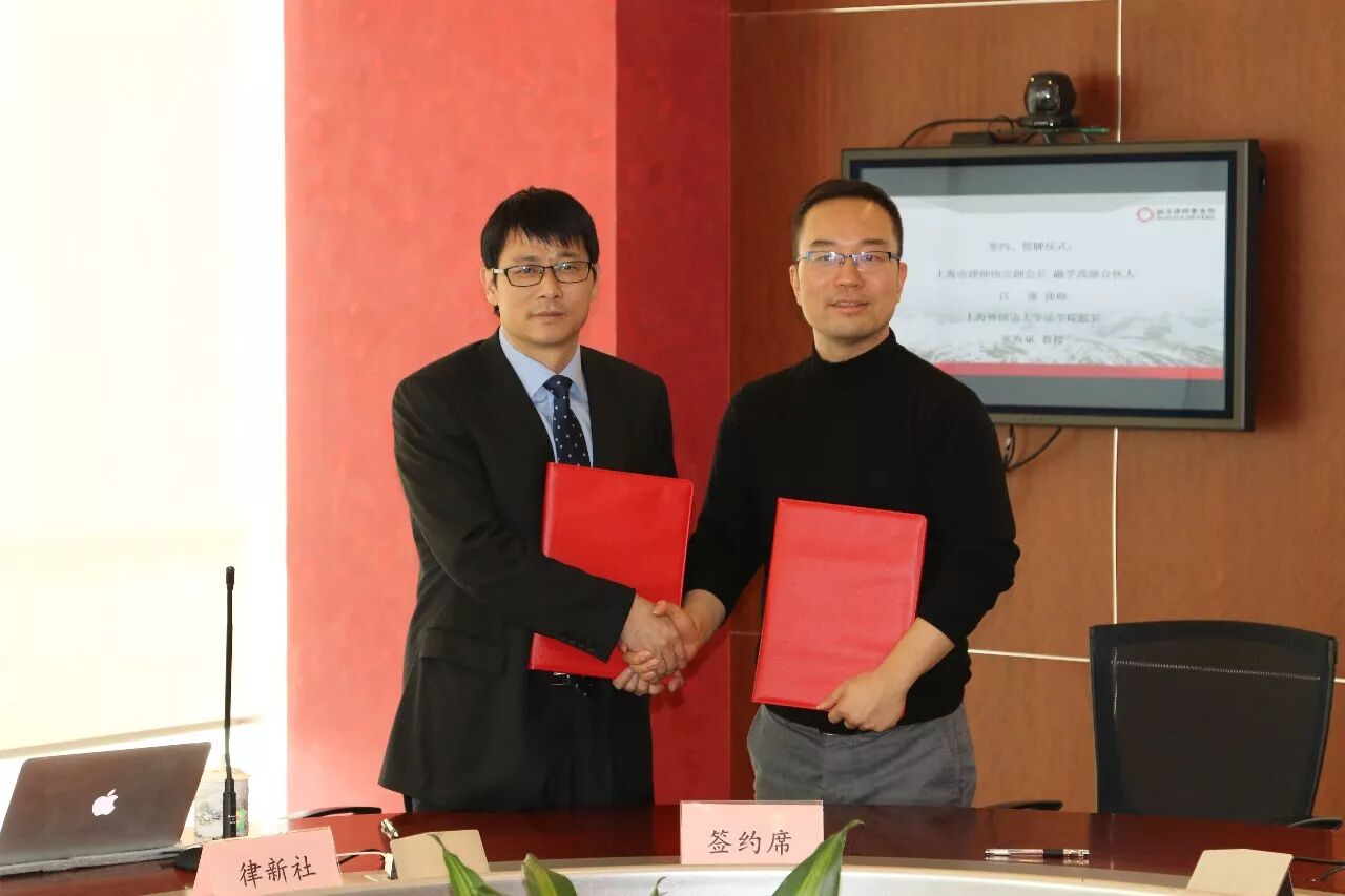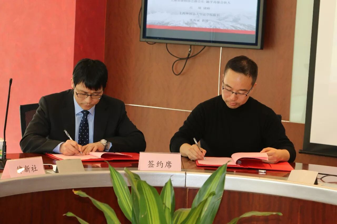 随后,由融孚律师事务所高级合伙人、联合创始人吕琰和上海外国语大学法学院院长张海斌共同进行签约、授牌。