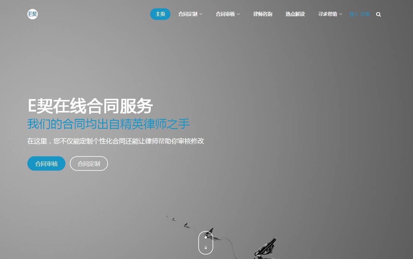E契,取谐音“易契”,意为“简单的契约,方便获得的契约”。旨在通过桌面浏览器,平板,手机等平台,以人机交互的形式,收集客户需求,从而自动地,便捷地,专业地为客户生成各类法律文书,包括离婚协议,劳动合同,竞业禁止协议等。