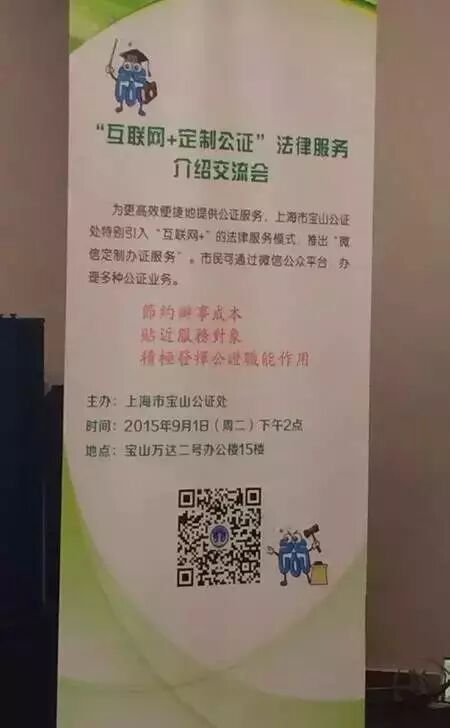 上海市宝山公证处今年也引入“互联网+”的法律服务模式,通过移动互联网与微信工具相结合的手段,利用微信公众号的特点开发微信办证功能。