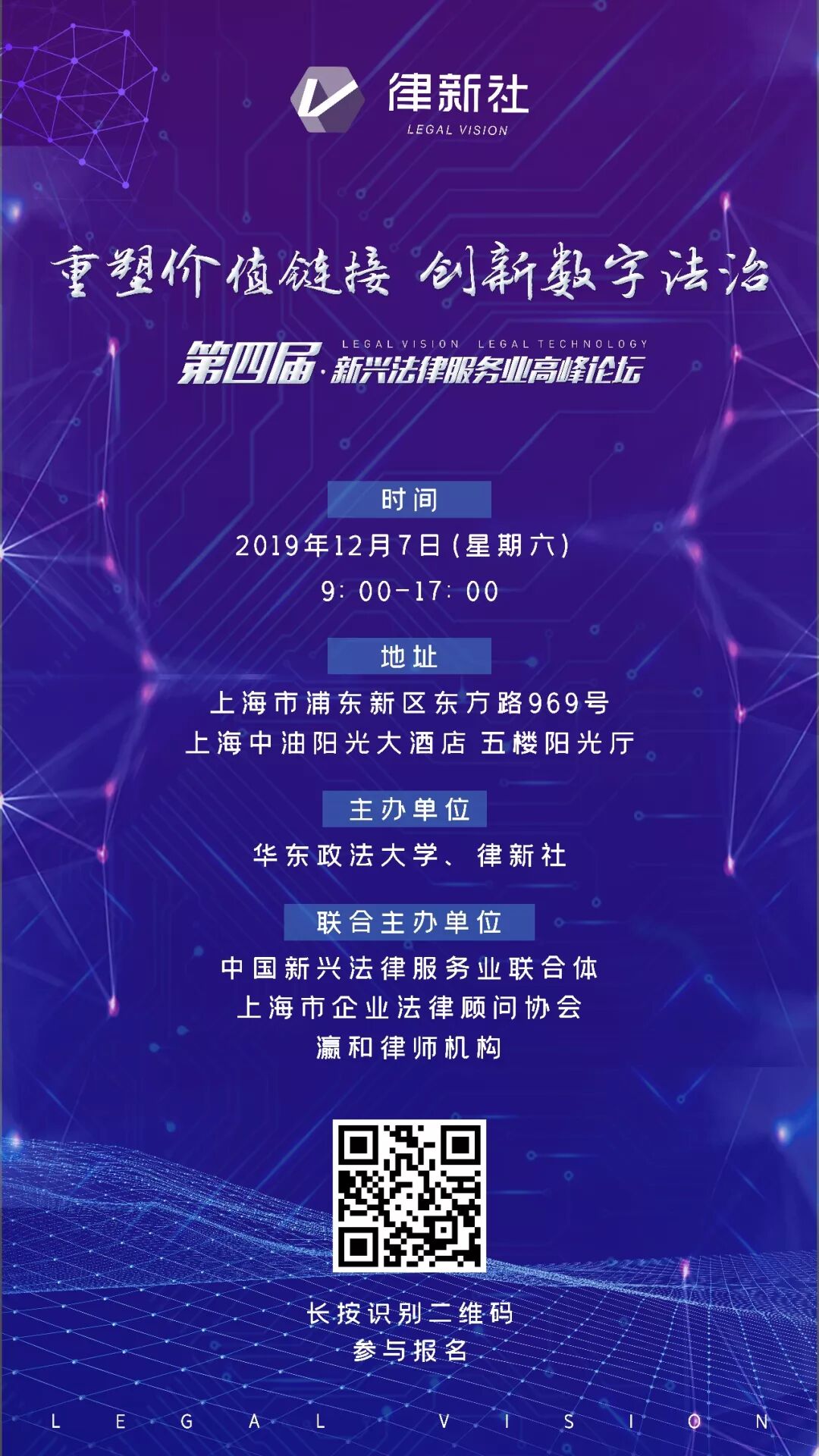 4年来,中国新兴法律服务业高峰论坛持续聚焦前沿新技术、新模式、新思潮,思考如何创新法律服务市场,创新社会治理,让更多公众获益!12月7日,“重塑价值链接 创新数字法治”第四届新兴法律服务业高峰论坛震撼来袭!这是一个还没有最终答案的行业,这是一个还有很多勃勃生机和无限可能的行业,我们正在开启新兴法律服务业的新时代。