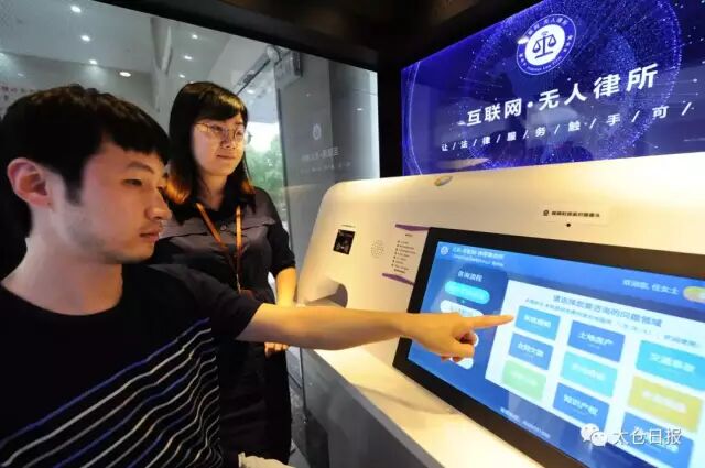 比如,江苏太仓出现首个“无人律所”,30秒内帮你联系到全国38000名律师。刷一刷身份证,点击要咨询的问题类型,就能免费匹配一位律师。