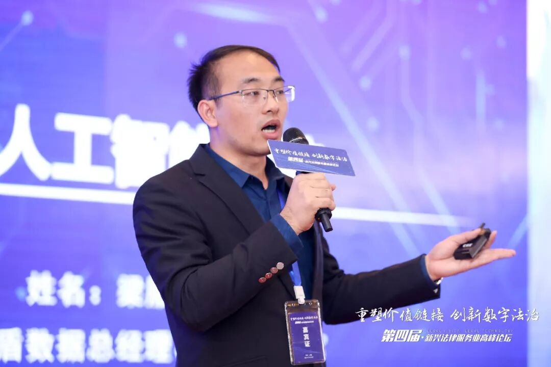擎盾数据总经理、首席运营官梁雁圆作了“法律人工智能大脑”的主题发言,他表示擎盾数据的宗旨是打造最强的“法律大脑”,实现人和法律知识、人和法律业务、人和法律专家的连接,让法律服务更加高效、专业、普惠,最终让法律服务触手可及。在这样的愿景下,他表示今天参与论坛的各家公司其实都在为我国的“法律大脑”作努力,这是集体的贡献,而非一家公司的单打独斗。他认为区块链显著提高了科技赋能公共法律服务的效能,作为一种数据存储的方式,擎盾数据将更多地利用区块链让数据在司法应用场景中沉淀,以助力公民法律意识的觉醒。