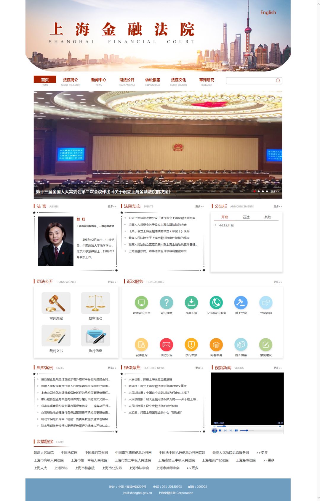 正式上线的上海金融法院官方网站也令人耳目一新,网站设有新闻中心、审判研究、司法公开和诉讼服务四大板块,“诉讼服务”板块设置网上诉讼服务平台,含有网上立案、查询案件进度、阅卷申请等服务栏目,“司法公开”板块设有审判流程公开、庭审活动公开、裁判文书公开、执行信息公开四大司法公开平台,全方位公开上海金融法院各项工作情况。
