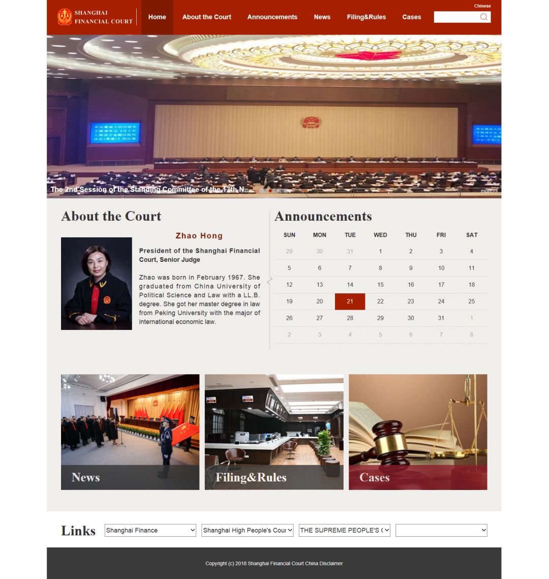 同时,网站还分中英文版,其中,英文网站参照国外法院网站模式设计,重点介绍上海金融审判情况,向国际社会展示中国良好的金融法治环境。