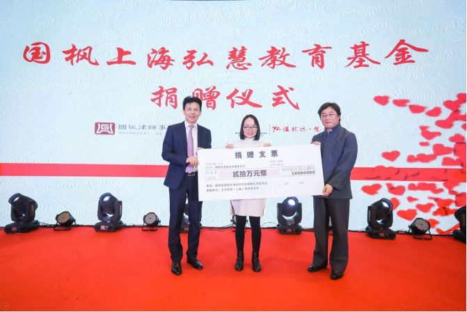 1月12月下午,刚下过雨的上海清新而又冷冽,但上海宏安瑞士大酒店苏黎世厅却热闹非凡,国枫上海弘慧教育基金捐赠仪式在此隆重举行。