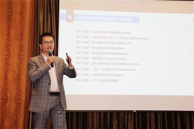 智合联合创始人、副总裁何佳伟以“中国法律服务市场综述与未来趋势展望”为主题,分析了红圈所的创收情况等数据及中国法律服务市场的发展趋势。何佳伟介绍,在未来,中国法律服务市场仍将保持高速增长,律所将向着人数过万、创收过百亿的超级大所发展,部分规模化大所可能出现解体和分裂。涉外法律服务能力将是未来律所的核心竞争力,“四大”会计师事务所将与律所全面开战。