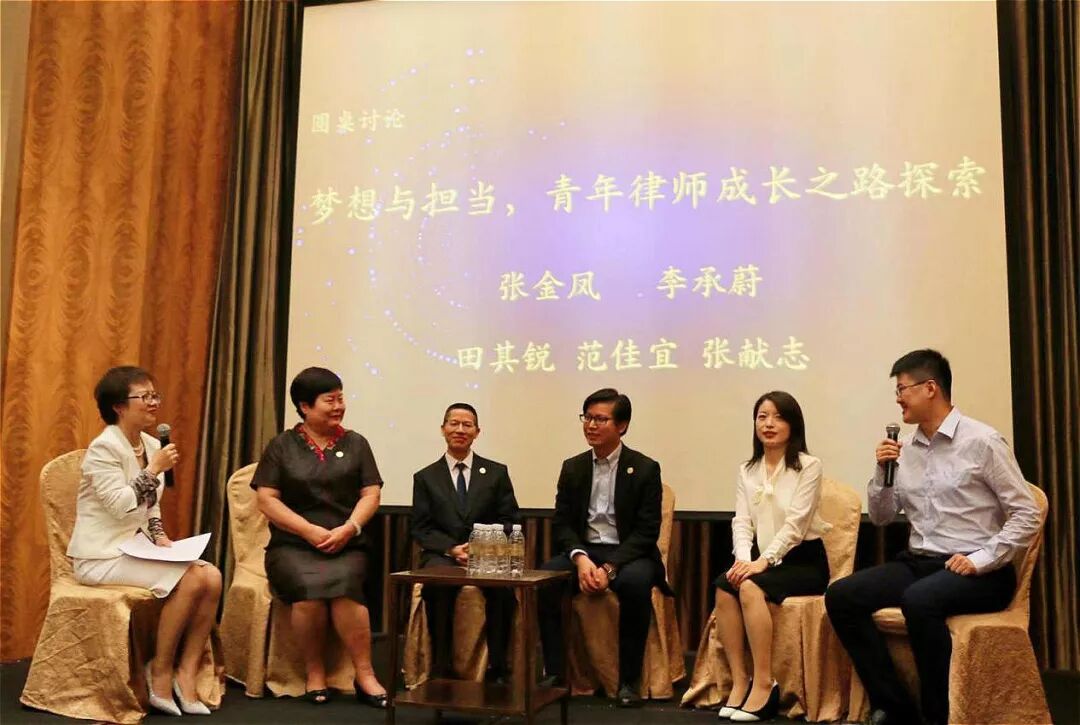 在两位嘉宾发表演讲之后,研讨会进入圆桌讨论环节。圆桌讨论以“梦想与担当,青年律师成长之路探索”为主题,以新颖的“你问我答”的方式进行。海华永泰郑州分所主任张金凤、海华永泰昆明分所高级合伙人李承蔚、海华永泰上海总部律师田其锐、海华永泰武汉分所律师范佳宜、海华永泰上海总部律师张献志等五位嘉宾圆桌嘉宾直抒胸臆,畅谈职业体验、所想与感怀。