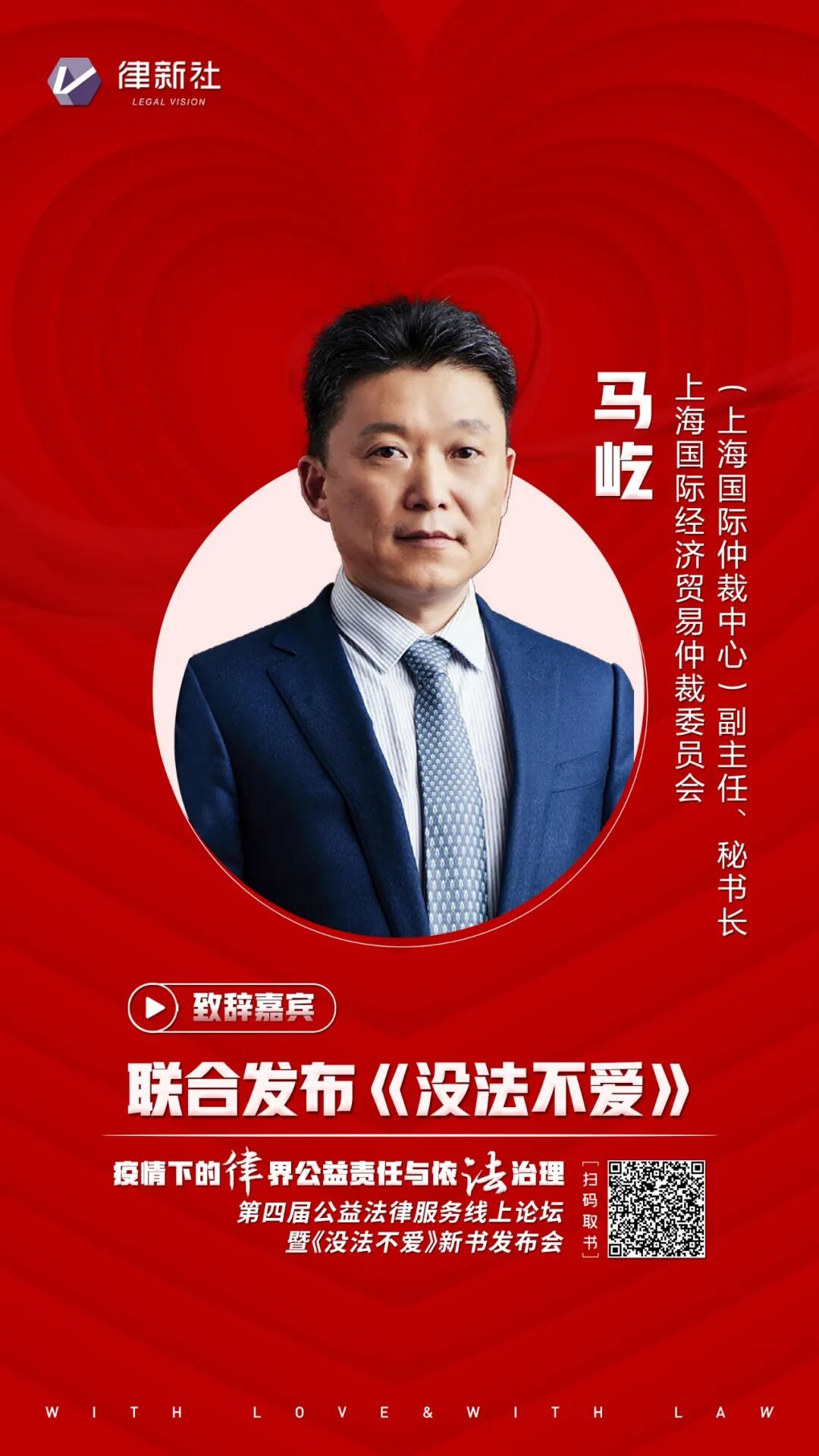 作为《没法不爱》的编委之一、首届律届公益榜单的评委,上海国际经济贸易仲裁委员会(上海国际仲裁中心)副主任、秘书长马屹代表上海国际仲裁中心预祝本次发布会圆满成功,并向律师公益先行者致以崇高的敬意:“我国律师制度恢复的四十余年,也是律师履行公益责任的过程。希望通过《没法不爱》带动更多律师加入社会公益活动,引领法律圈公益风潮。”