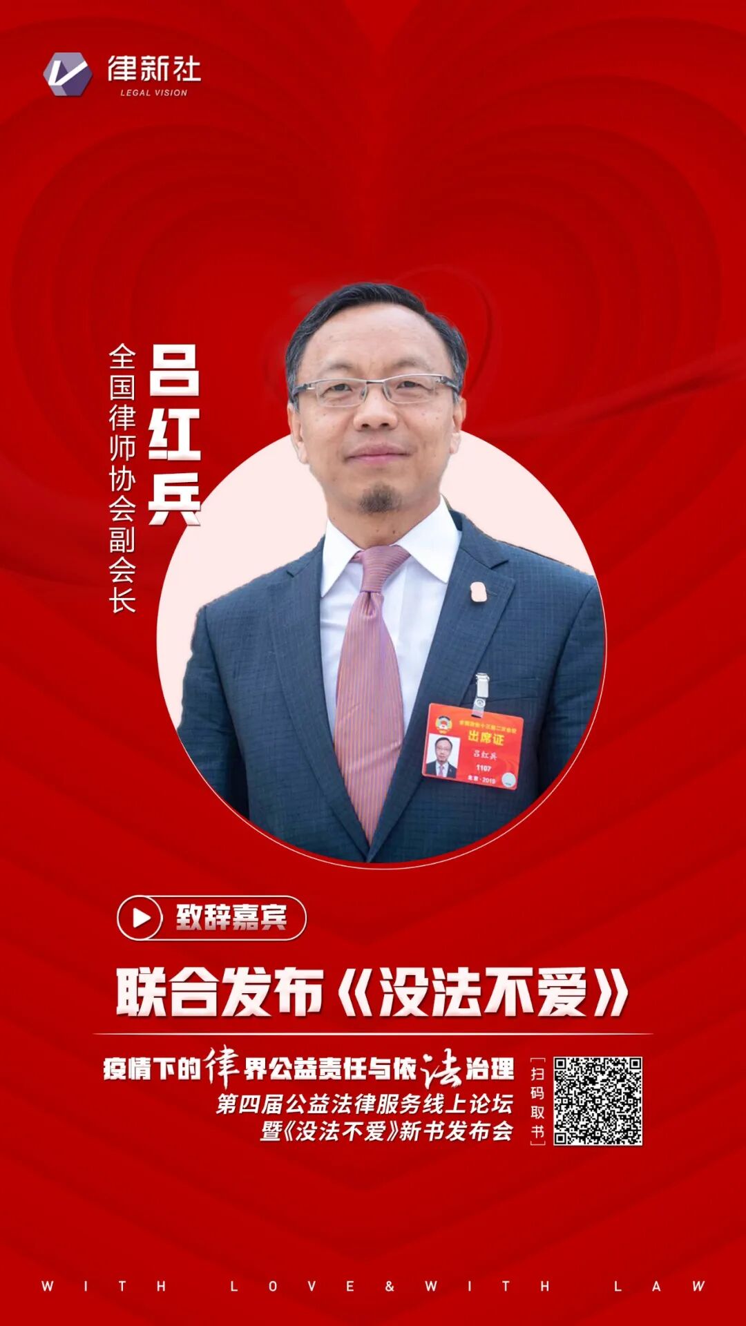 全国律师协会副会长吕红兵把《没法不爱》称为中国律界公益的“红皮书”,并发表了以“为这本红皮书喝彩”为主题的致辞,向律新社对中国律界公益的关注、记录和传播表示感谢:“《没法不爱》由律师以真心写成,由律新社以真情铸就,完整记录了中国律界公益的实践。‘法’是办法、章法、法律、效法的统一,书中的公益故事值得所有律师学习,值得律师业弘扬。”