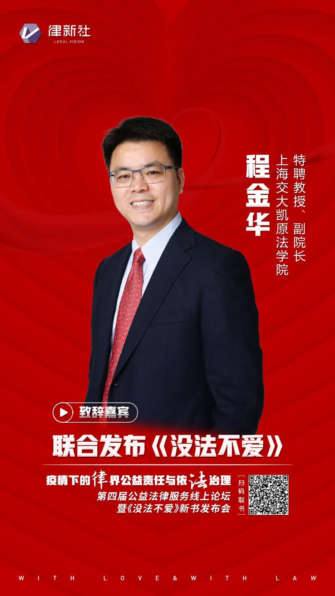 上海交通大学凯原法学院特聘教授、副院长程金华致辞表示,在抗击疫情中,律师行业表现出的大爱表明社会责任建设已被放在更为重要的位置。这表明了中国律师行业正逐渐走向成熟,也是中国律师制度恢复重建40年的最耀眼成果。上海交通大学凯原法学院将把培养德艺双馨的法律人作为职责,成就普惠公益。