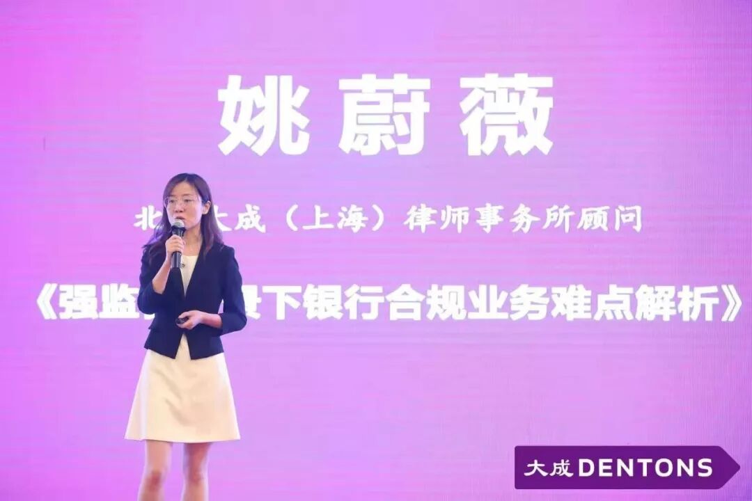 大成(上海)律师事务所顾问姚蔚薇在其发言中介绍了强监管背景下商业银行合规的业务难点,主要包括以下两点: