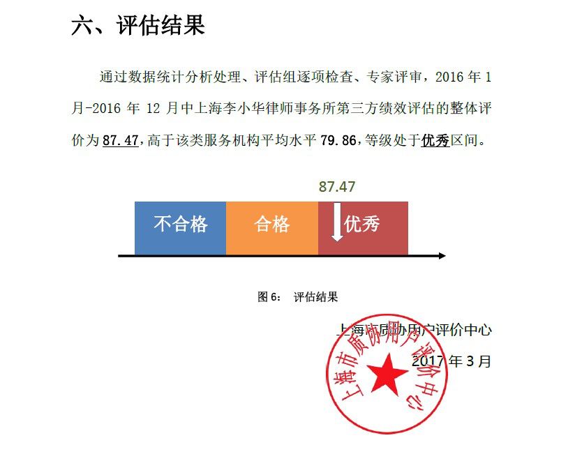 2017年5月,根据《上海市经济信息化委关于公布2016年度上海市中小企业服务绩效第三方评估结果的通知》(沪经信企〔2017〕234号)中的公示,李小华所荣幸获评为“优秀”等级。而此次参评的中小企业公共服务机构共245家,其中法律服务机构20家,获评为“优秀”等级的律所仅有6家。