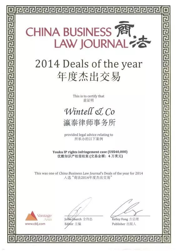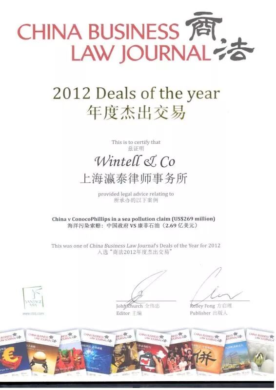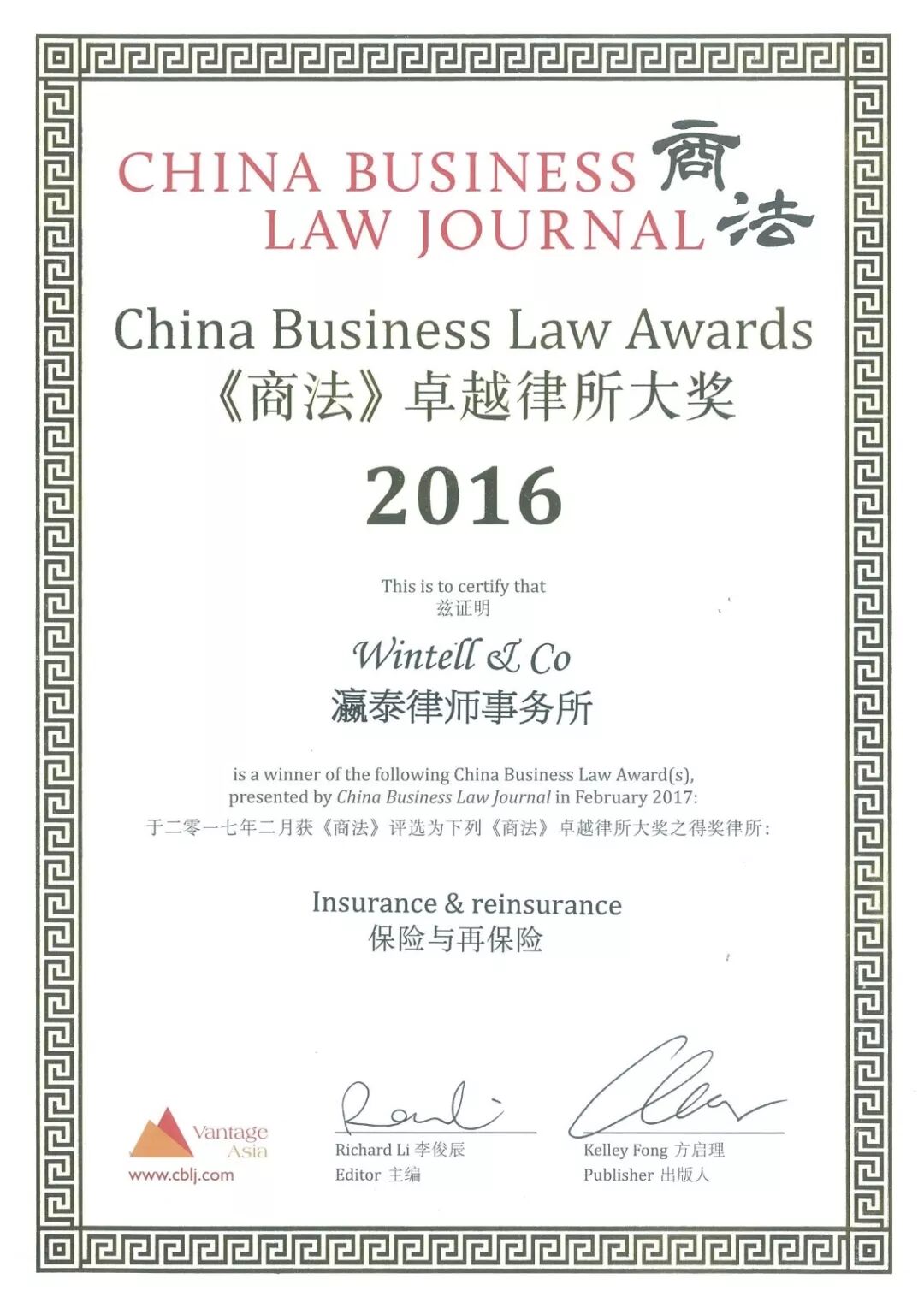 2018 年,瀛泰获钱伯斯推荐的卓越律师事务所(保险、海商海事、公司商事);获《商法》CBLJ杰出交易(并购);获APAC Insider亚太地区优秀律师事务所评奖(资本市场、金融);2017-2018年,获《商法》CBLJ 卓越律所大奖(保险与再保险、海商海事);2012-2017年,获钱伯斯推荐的卓越律师事务所(保险、海商海事);2016年,获《商法》CBLJ 卓越律所大奖(保险与再保险);2013/2015 年获《商法》CBLJ 卓越律所大奖(航空及海商海事);2014年获《商法》CBLJ杰出交易(优酷知识产权)……