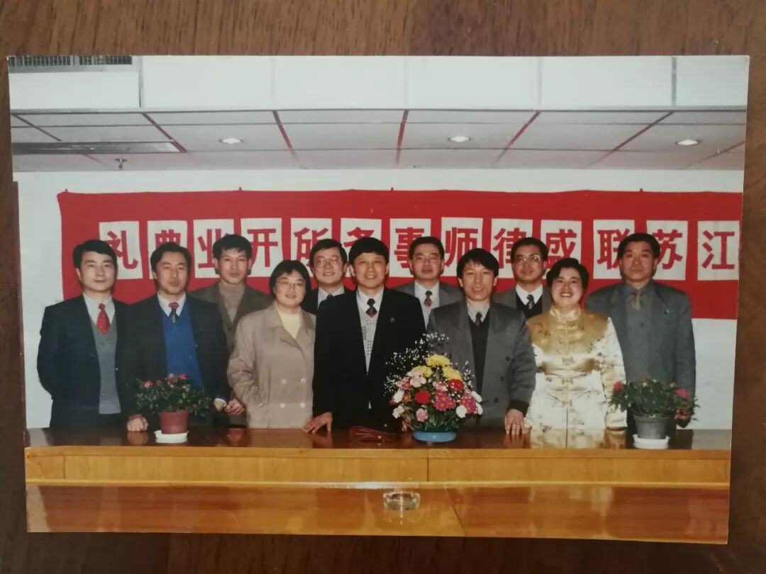 1999年,联盛开业时江苏省司法厅领导与8位创始合伙人合影
