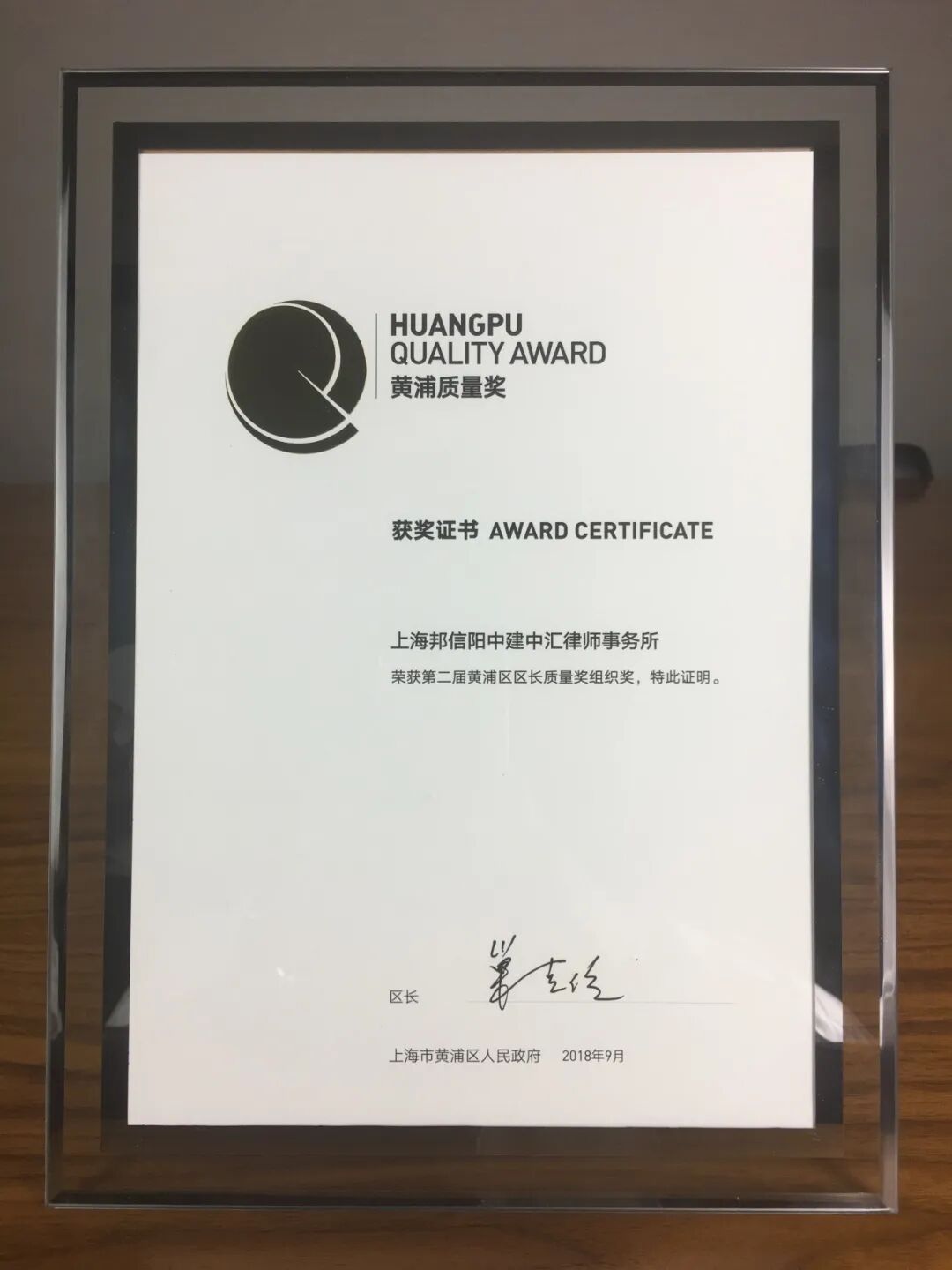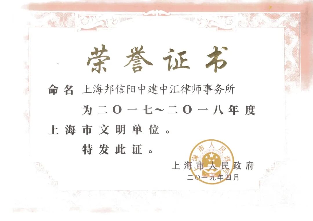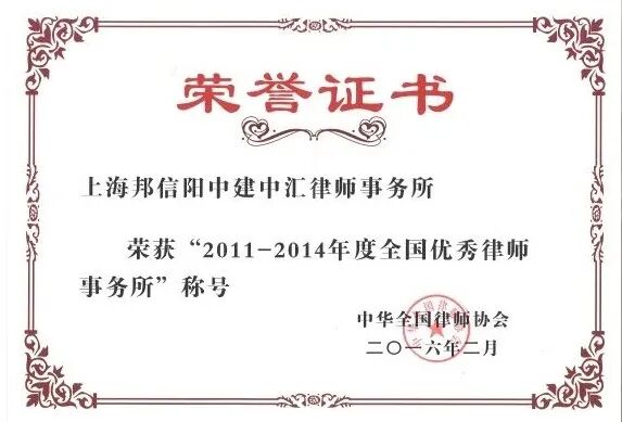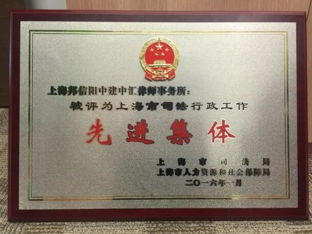 2018年,邦信阳中建中汇作为唯一一家参评律所获得第二届黄浦区区长质量奖,该奖项也是黄浦区人民政府设立的最高质量荣誉,邦信阳中建中汇的获奖体现了社会各界对其法律服务品质和质量管理水平的认可。