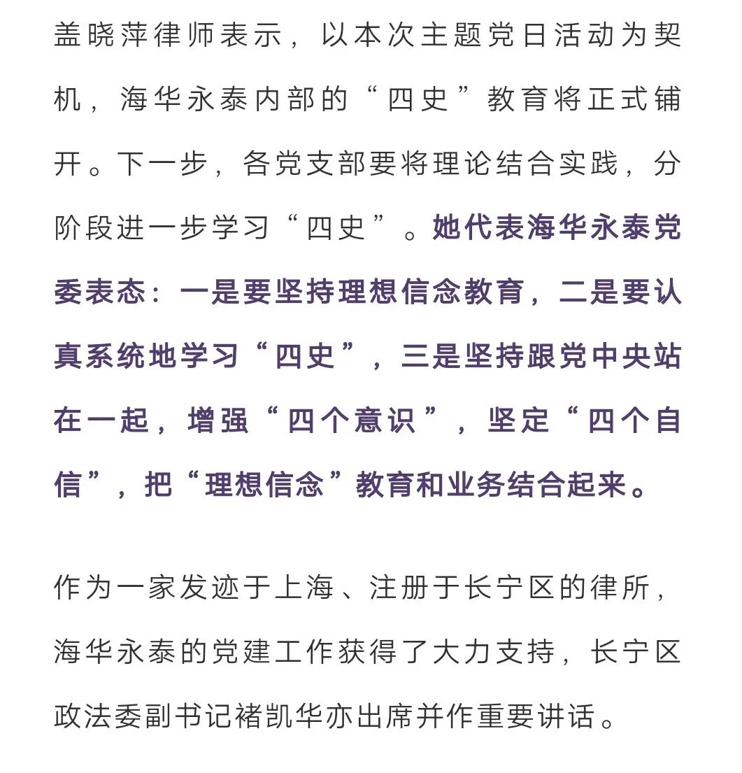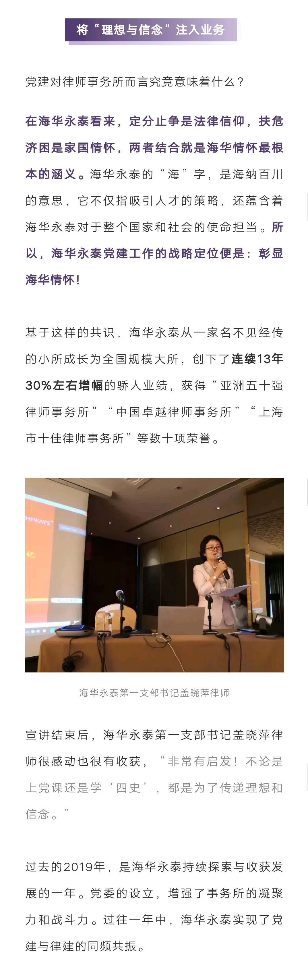 盖晓萍律师介绍海华永泰党委成立一年以来的成果