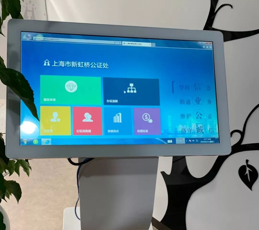 为了方便企业咨询和办证,新虹桥公证处在虹桥商务区管委会设立有接待窗口,并充分利用技术手段,依靠远程视频进行公证咨询,解决了公证处人手少的问题,同时又增加了企业的覆盖面。如果对方有进一步的需求,公证处会派公证员专门前往接待点受理案件。很多客户选择与新虹桥公证处进行持久合作,也是基于可以在办证时间上得到保证。