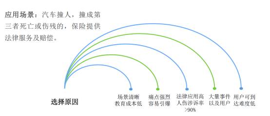 以个人车主举例,当发生人伤事故时(场景),通过个人法律费用保险,每年缴纳50/100元的保费,保额设置为5000/10000元,由专业律师为被保险人提供服务,同时涵盖人伤案件的律师费。