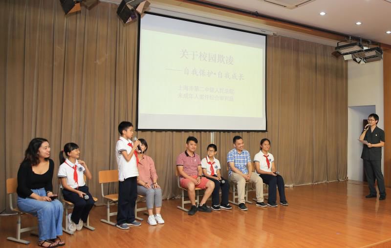 9月7日,上海市复兴实验中学的大礼堂里,开展了一场“法治护航,校园‘零’欺”法制课堂暨赠书仪式。