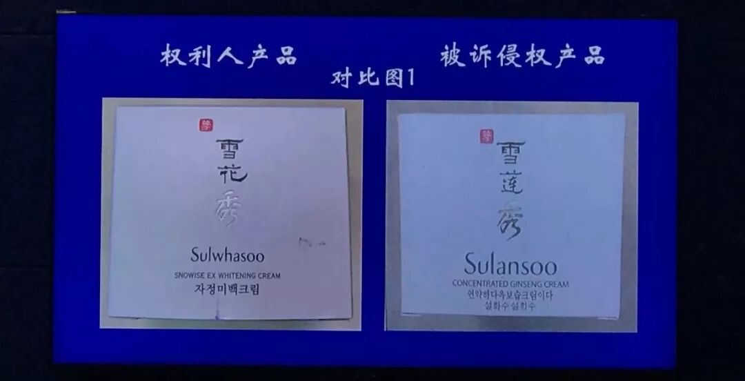 “为什么字体、字形、文字排列的设计会与雪花秀如此近似甚至相同?英文商标构成也如此近似?这绝对不是巧合,而是抄袭模仿!”原告方反问道。