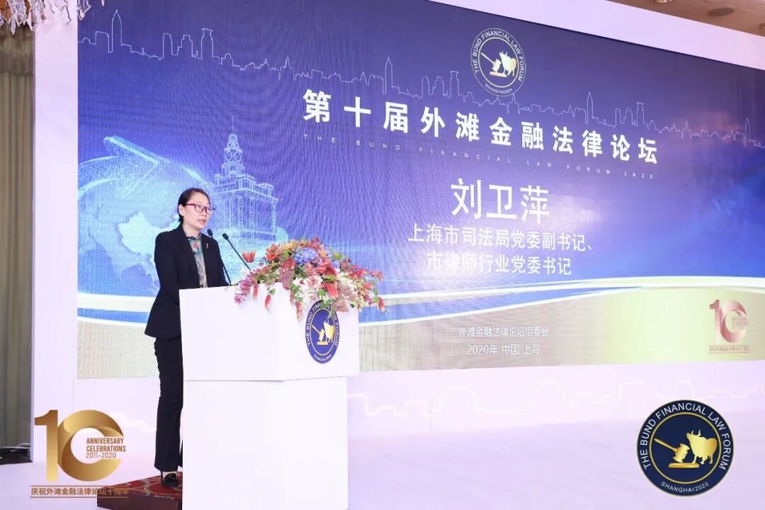 中共黄浦区委书记杲云在开幕式致辞中强调,金融的健康发展离不开法治的有力保障,营商环境的优化更需要夯实法治的基石。黄浦区始终致力于完善法治化的现代金融治理体系,坚决守住系统性金融风险底线。作为上海的“心脏、窗口和名片”,黄浦区今后将以更加开放、创新、包容的姿态,持续加强制度探索和实践创新,营造更加市场化、法治化、国际化、便利化的营商环境,着力打造金融开放新高地、金融创新试验田、金融发展生态圈,不断提升外滩金融集聚带的辐射力和竞争力,助推上海国际金融中心建设向更高能级迈进。▲ 刘卫萍 上海市司法局党委副书记、市律师行业党委书记上海市司法局党委副书记、市律师行业党委书记刘卫萍致辞,她希望外滩金融法律论坛在各界的支持及参与下,能够助推黄浦区乃至全市金融业和法律业持续健康发展,为上海市经济建设和社会发展贡献知识力量,为法律服务行业与金融行业加强沟通交流、共商金融法治建设搭建良好平台,为金融决策和制度建设提供智力支撑和理论支持。