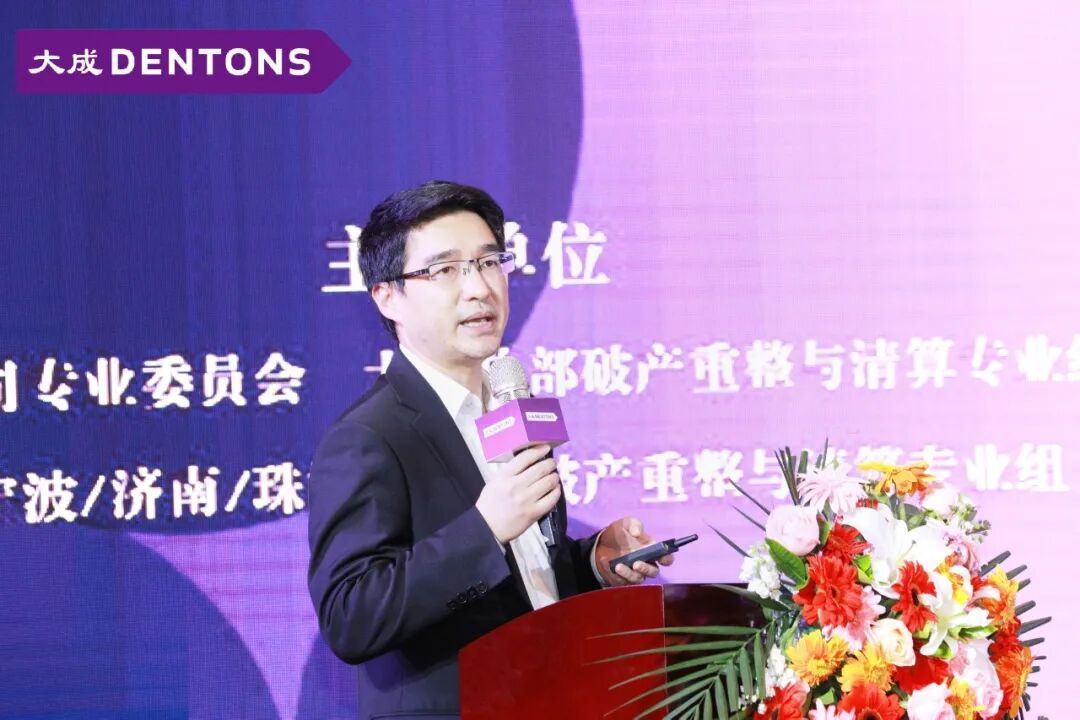 大成中国区管委会马江涛主任为本次会议致辞。马主任指出,法律服务产业属第三产业,需要寻找“冰球要去的地方”。不断的变革激发了整个市场的鲶鱼效应,对破产领域专业化也提出新的要求。大成破产项目的综合性,与金融、争议解决、不良资产等领域形成动态平衡。