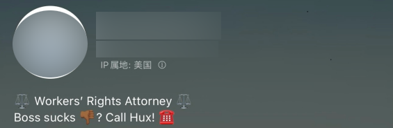 翻译 1.美国移民律师。相信正义与同情。处理H1B、L1和EB1签证事务。 2.工人权益律师 老板很糟糕?打电话给Hux! 3.#tiktok难民来自美国加利福尼州的家庭法律师。 4.纽约市的商业与娱乐律师/TikTok难民。