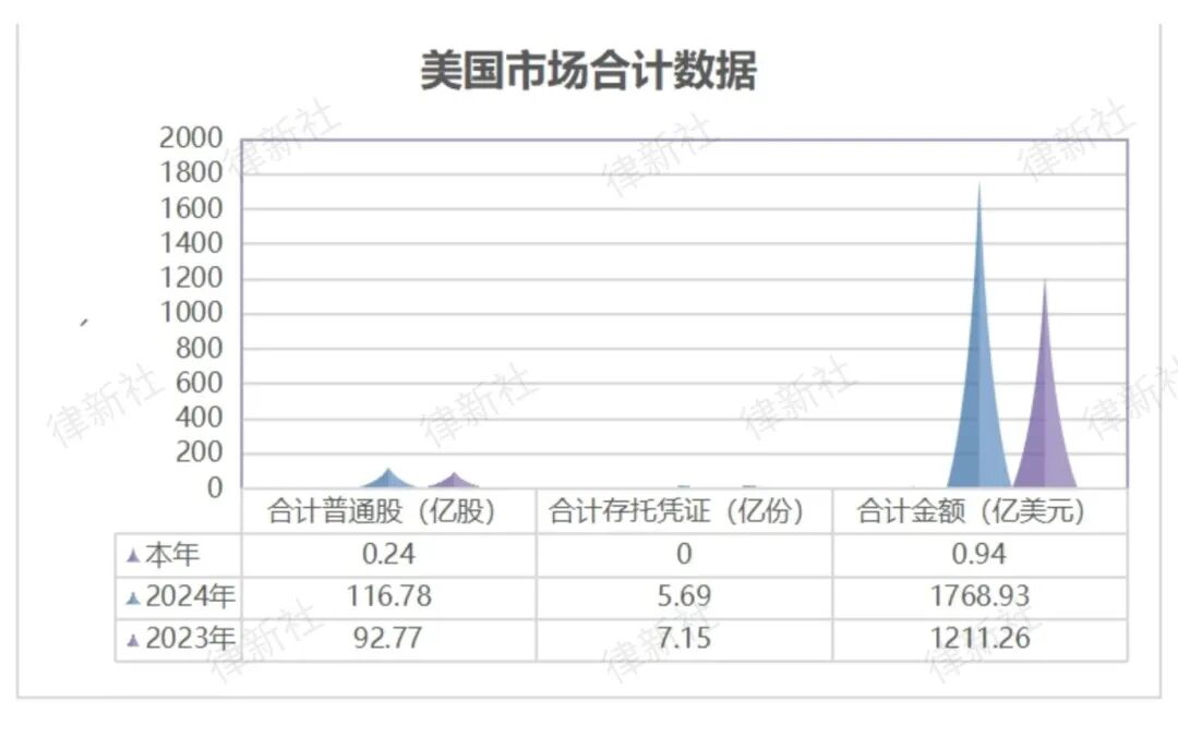 此外,2024年美股市场的再融资活动同样活跃,全年共有872家企业进行了增发,累计募资1361.56亿美元,相较于2023年的694家增发企业和938.42亿美元的募资额,呈现出明显的上升趋势。这一对比数据也表明,美国资本市场的资金供给依然强劲,为全球企业提供了广阔的发展空间。