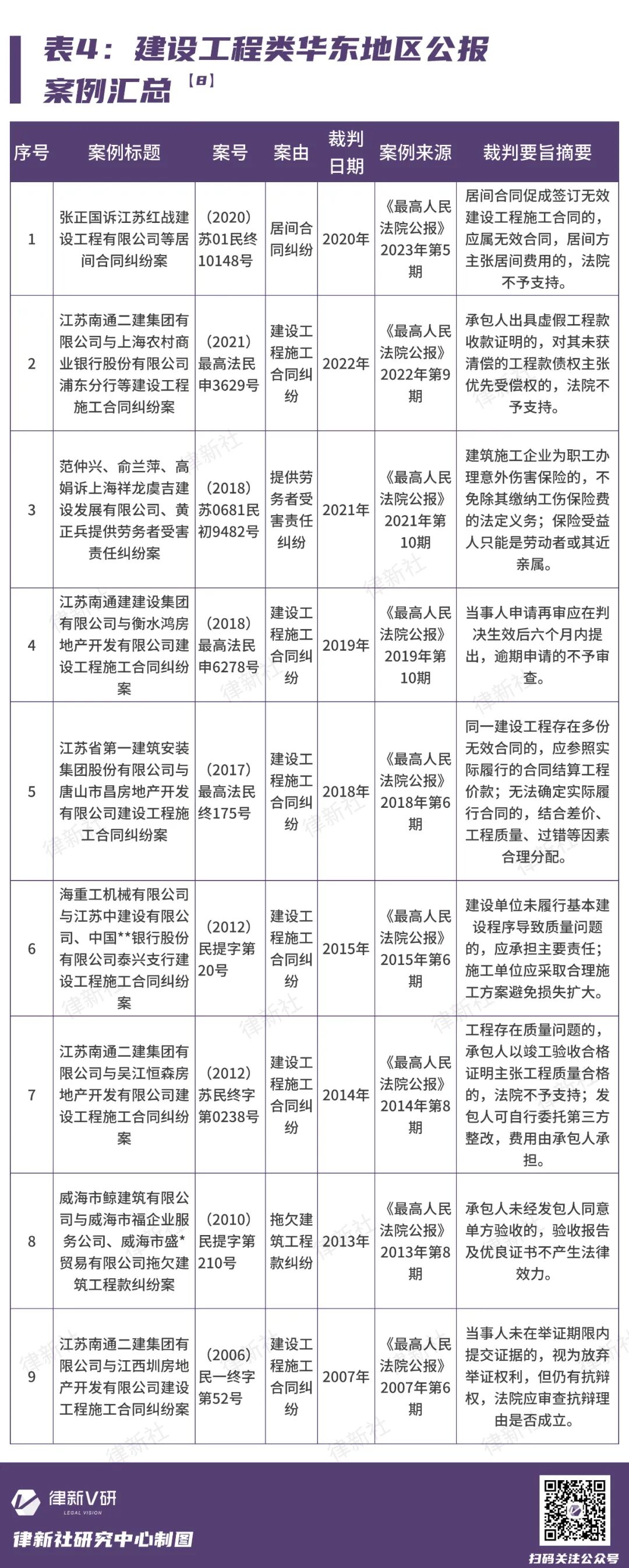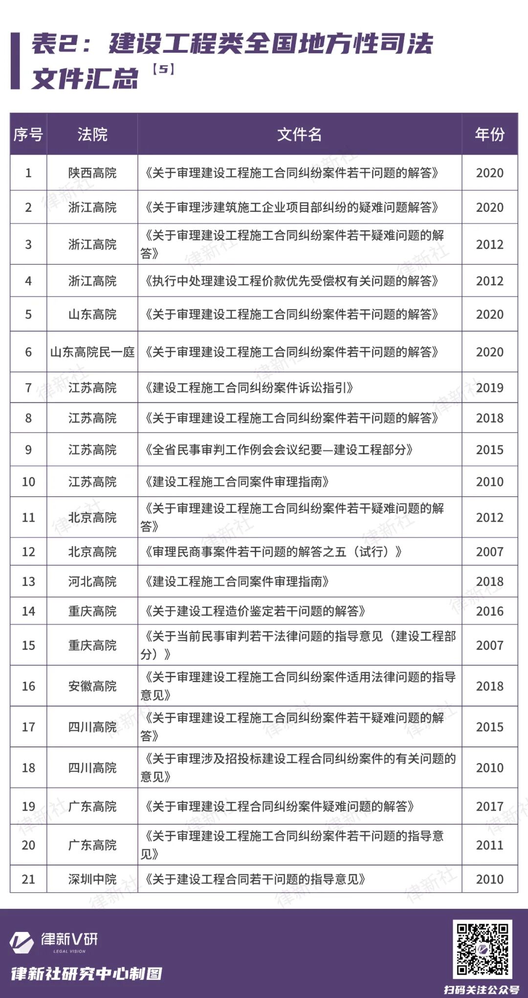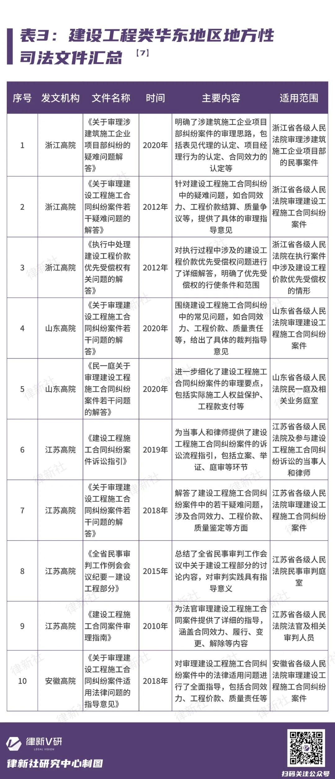 工程千般,法律万变,以法应变方得始终。 2024年中国建筑业在挑战中前行,整体营收下滑,行业竞争加剧。全国建筑业企业上半年新签合同额同比降低3.3%,市场需求放缓;房地产开发企业房屋新开工面积大幅下降,其中住宅新开工面积下降23.1%[1];行业洗牌加速,八大建筑央企市场占有率提升至51.6%,而中小建筑企业生存空间被挤压;2024年1—11月,全国建筑企业的破产重整数量更是多达2400多家[2],优胜劣汰趋势明显…… 2024年12月,律新社研究中心启动《精品法律服务品牌指南(2024):建设工程领域》调研,从全国建工市场现状聚焦华东地区司法实践样本,系统梳理最高人民法院司法案例库及华东区域法院发布的司法文件、公报案例,并结合住建部、国家统计局等权威数据,解构政策导向与行业趋势的交互逻辑。调研发现,华东地区以47.6%的专项司法文件占比和39%的全国建设工程纠纷案件量,持续领跑全国建设工程法律服务的规则创新与实务应用,其裁判规则体系化、纠纷解决专业化、技术赋能力度等维度均呈现显著标杆效应。以此,为法律服务从业者提供华东建设工程的“规则地图”与“趋势坐标”,从而在建设工程法律服务“专业化”与“地域化”并行的竞争格局中构建差异化优势。 目前,全国建设工程法律服务呈现显著区域分化。华东地区以查处总量5,872项次和罚款总额18.6亿元双高领跑,反映其经济活跃度与监管强度并存,同时司法对承包人优先受偿权的支持率全国最高,体现成熟市场对权益保护的侧重;西南地区受生态政策驱动,环保类案件占比远超其他区域,司法实践中81%的案件直接采纳政府审计结论,凸显“生态优先”导向;华北、华中地区则分别聚焦国企合规(政府项目驳回率67%)与劳动者权益(欠薪执行率88%),政策目标与司法实践高度协同。相比之下,东北、西北受限于经济结构与历史遗留问题,查处量、罚款额及司法支持率均低于全国均值,亟待通过专业化升级激活市场潜力。 尽管区域差异显著,全国建设工程法律服务面临三大共性挑战:一是工程款结算争议、环保合规成本攀升、中小企业法律意识薄弱。对此,各区域亦探索差异化解决方案,华东通过国际仲裁与科技赋能提升纠纷解决效率;西南强化政府审计与生态合规联动;华中依托农民工工资“绿色通道”实现快速执行。近年来,随着全国统一大市场建设推进,区域政策与司法裁判或逐步趋同,但短期内“因地制宜”仍是破解地方性难题的核心逻辑。 (一)司法能动性的区域投射:以华东为典型的制度创新图谱 华东地区作为中国经济最为发达的地区之一,建设工程法律服务市场呈现出高度的专业化和多元化特征。近年来,随着区域经济持续增长与城市化进程加速,建设工程领域的法律服务需求不断增加,涵盖了从项目前期规划、合同谈判、施工过程管理到竣工验收及后期运营维护等全生命周期的法律事务。 目前,在建设工程领域,全国范围内共分布21份地方司法文件,其中,华东地区的司法文件数量较为突出。江苏高院有4份文件,浙江高院有3份文件,山东高院有2份文件,安徽高院有1份文件,华东地区共占10份,占比约47.62%。其他地区中,北京高院有2份,重庆高院有2份,广东高院有2份,深圳中院有1份,四川高院有2份,河北高院有1份,陕西高院有1份,共占11份,占比约52.38%。 根据对全国省级司法机关公开文件的系统性梳理,目前建设工程领域共形成21份地方性司法文件,其空间分布呈现显著非均衡特征。具体分布情况如下: 在华东地区,司法文件的发布呈现出明显的集中趋势,以总量10件、占比47.62%形成第一梯队。其中,江苏省以4件文件的数量居于首位,浙江省紧随其后有3件,山东省和安徽省分别有2件和1件。 次活跃区域涵盖了华北地区、西南地区和华南地区,这些地区的司法文件发布总量合计为10件,总占比同样为47.62%。在华北地区,北京市发布了2件文件,河北省发布了1件。西南地区的重庆市和四川省各发布了2份文件,而华南地区的广东省发布了2份文件,深圳市发布了1份文件。 以西北地区为代表的基础保障区域,目前仅有陕西省发布了1份文件,占比为4.76%。然而,据研究中心统计,东北地区和华中地区近年来没有发布相关司法文件。 图1:建设工程类全国地方性司法文件区域占比图[6] 华东地区司法文件占比高,反映出该区域司法实践活跃,对建设工程施工合同纠纷等法律问题关注度高,地方司法机关积极制定文件指导审判实践以应对经济发展带来的新类型案件。同时,也说明华东地区在司法解释和审判指导方面具有较强的能动性,致力于通过规范性文件提升司法质量,满足地方司法需求。具体而言,华东地区的地方性司法文件呈现出以下特征: 1. 规范层级体系化 江苏高院精心构建起一个包含诉讼指引、问题解答、会议纪要以及审理指南的四维指导体系,使得从程序到实体,再到裁判标准,形成了一个完整且严密的全链条规制。在程序方面,明确规定了各类建设工程纠纷的受理条件、管辖权确定以及送达程序等,确保案件从立案到审理的每个环节都有章可循。实体上,针对建设工程合同效力、工程价款结算、质量认定等核心问题,在给出详尽指导意见的同时,为法官裁判提供了坚实的法律依据。在裁判标准上,则通过发布典型案例和裁判要点统一裁判尺度,并减少同案不同判的现象。2018年出台《建设工程施工合同纠纷案件若干问