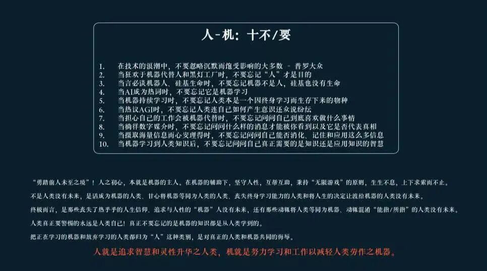 关于AI的思考,凤梅姐不是专家,但是作为人,我们都有发言权,一切技术都应该让人感到公平、正义与幸福,这是统一的标准。再次推荐韦青先生的关于“人与机”的十条思考——