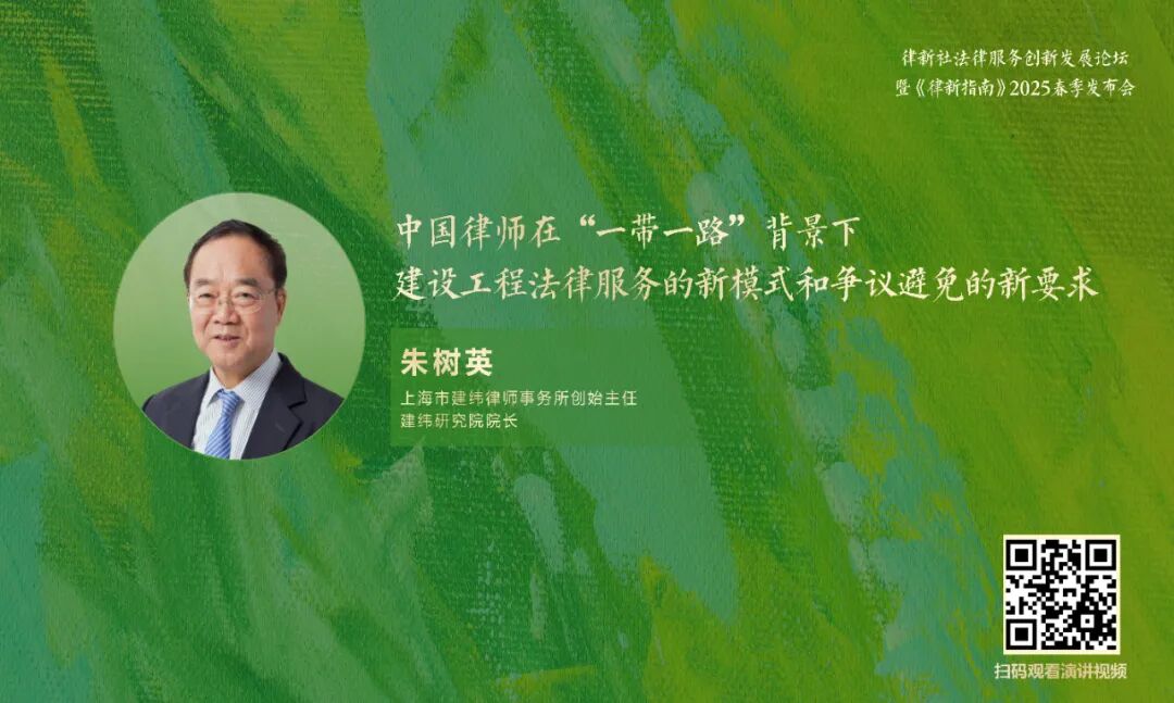 2025年4月19日,在“律新社法律服务创新发展论坛暨《律新指南》2025春季发布会”上,上海市建纬律师事务所创始主任、建纬研究院院长朱树英以《中国律师在“一带一路”背景下建设工程法律服务的新模式和争议避免的新要求》为题发表主旨演讲,并从跨境建设工程争议解决的具体案例当中,为我们揭示了新模式下的合规要点与争议预防。朱树英律师的主题分享整理如下: