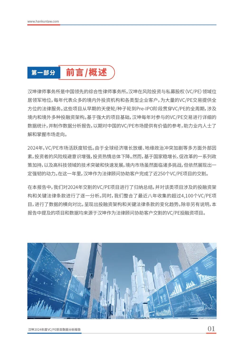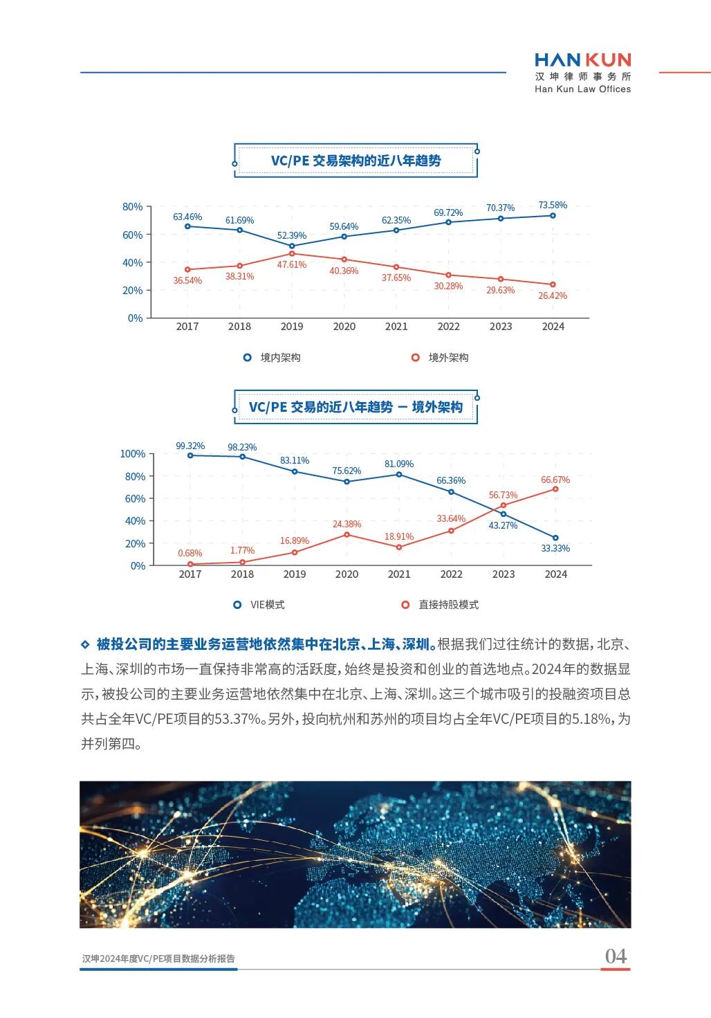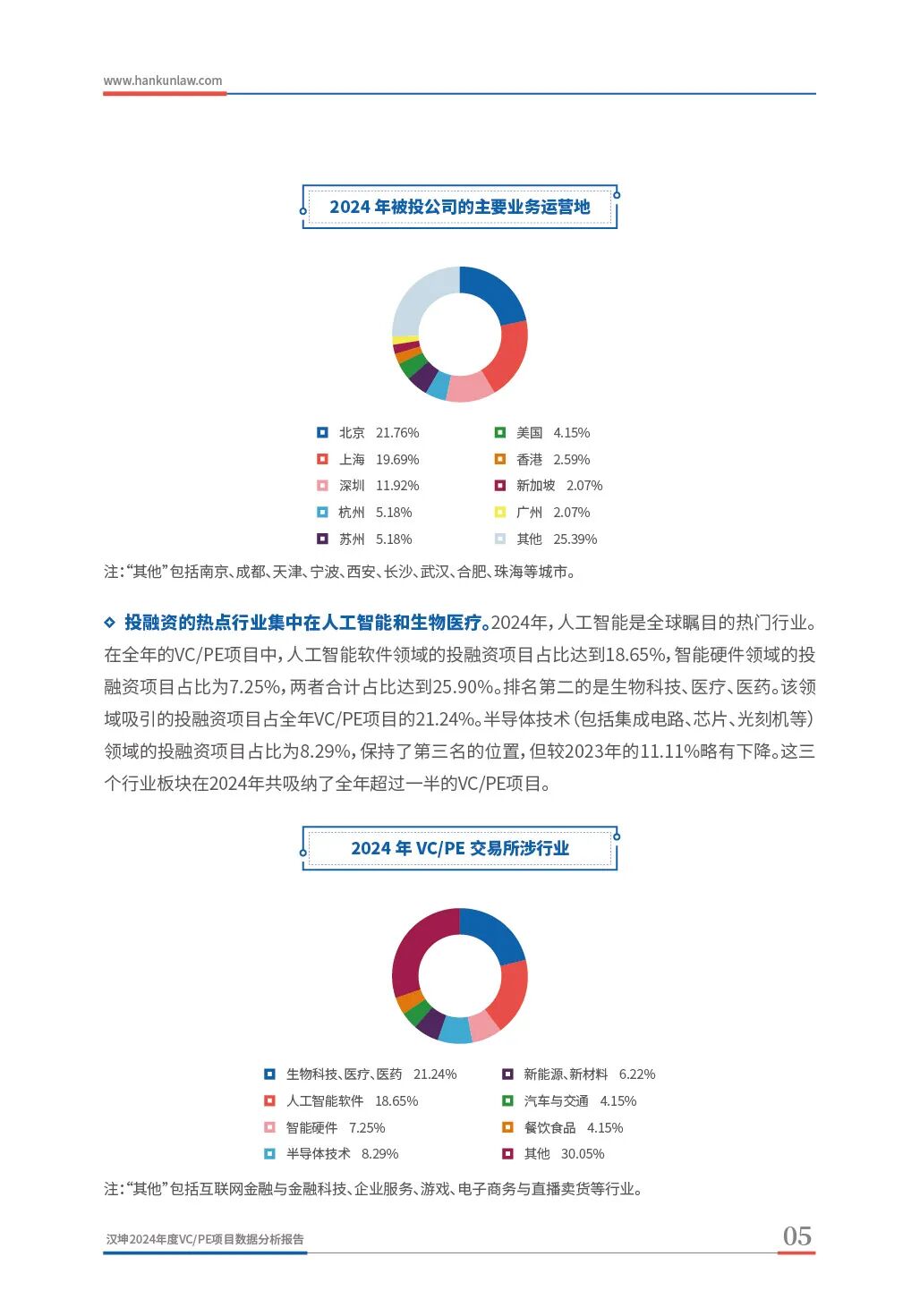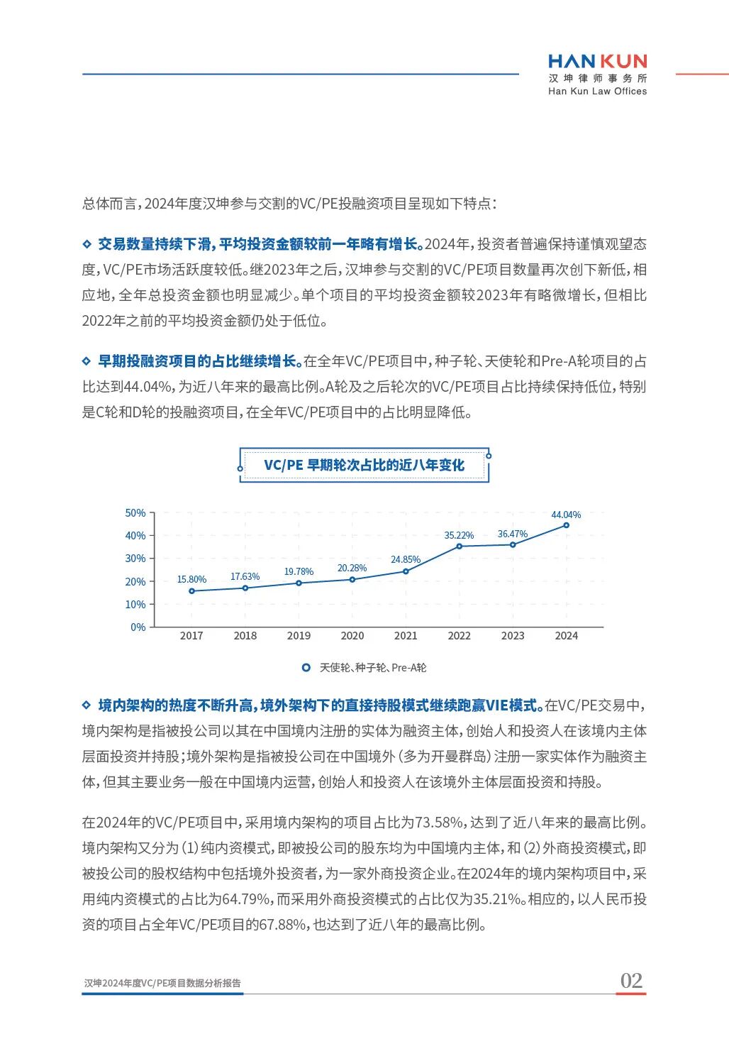 报告第一部分总结了2024年度汉坤参与的VC/PE项目呈现的几个趋势和特点: