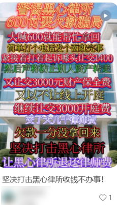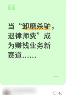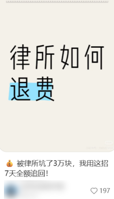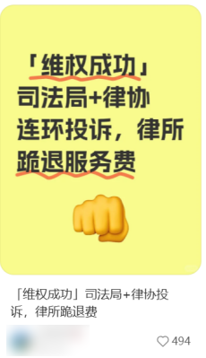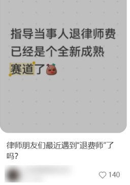 胜诉之后,等来的不是客户的称赞,竟是一纸投诉状和退费函? “胜诉后因执行难,竟需退还律师费?”近日,河南南召县司法局的一则通报引发关注。据《南方都市报》过往报道(2024年6月19日),孟女士委托律师刘某代理经济纠纷案胜诉后,因被执行人拒不履行判决,转而投诉律师“效率欠佳”要求退费。刘某最终退还2800元代理费,事件被称为“纠治群众身边不正之风的缩影”。[1] 这并非孤例。当经济下行压力传导至法律服务市场,律师被要求退费的案例正在激增,从客户因失业主张“服务未达预期”,到出现律所低价揽客引发的服务缩水争议,甚至出现恶意投诉的灰色产业链。 法律服务合同的签订,承载着双方的信任。当客户的预期与律师的实际交付之间存在差距时,此种信任便可能面临挑战,进而引发退费需求,确在情理之中。然而,当合理的退费诉求被裹挟于精心设计的“维权”套路,甚至不惜伪造证据时,一场针对律师职业的信任危机与挑战便悄然形成。 纵观当前法律服务领域,针对律师服务的投诉及其衍生的退费诉求呈现出值得关注的规模与态势。2024年,全国律师协会共受理针对律师的投诉案件1.54万起,其中涉及代理行为不尽责与收费违规的投诉占比过半,直接指向了后续的退费争议核心。[2]具体到地方层面,变化趋势尤为显著:至2025年5月,北京市朝阳区被投诉数量居首位的律所,其工单量攀升至355件,较2024年5月排名第一律所的86件,同比显著增长313%。大量投诉直接转化为退费诉求。这一现象背后,折射出当下经济环境下客户对成本的敏感度提升,以及对法律服务结果未能达到预期的容忍度急剧下滑,部分当事人甚至开始将投诉退费视为降低损失的便捷途径。 深入观察个案细节,律新社研究中心发现退费诉求有时已异化为对结果责任的极端追索。例如2025年某律师在办理执业机构变更手续期间,突遭先前代理的一宗施工合同纠纷败诉案的石材公司索赔。该公司不仅要求律所赔偿全部判决载明的110余万元损失,竟将尚未执行的款项也计入所谓“损失”范围。其在索赔理由中指责律师“配合虚假诉讼”及采用“错误诉讼策略”,却刻意回避了案件核心事实:涉案采购协议已被法院认定属违法转包性质,且部分败诉原因可归咎于石材公司自身上游合作方当庭拒绝出示关键证据(律师已提供完整的谈话笔录及微信记录证明自身履职正当性)。此类索赔尝试,无疑是在利用程序环节(如转所)施加压力,企图迫使律师作出专业责任认定之外的妥协。[3] 进一步审视网络舆论场域,围绕“退律师费”的争议信息亦显露出显著的分化特征。以小红书平台搜索“律师退费”为例,呈现的内容大体可归入两类: 维权攻略区 △ 图源网络 该部分内容主要集中于提供“维权攻略”,表现为“三步追回全款”“四个提升退费成功率的投诉渠道”等标题,内容多提供话术模板与操作流程解析。值得注意的是,部分相关笔记曾尝试附“退费指导”广告,推广所谓“不成功不收费”的服务(尽管此类引流信息现多被平台屏蔽,其推广主体通常未明确公示相关执业资质)。 律师回应区 △ 图源网络 该部分内容主要反映律师群体的关切与回应。该部分内容频繁流露出律师对部分当事人基于不当理由,尤其是受第三方机构鼓动而提出的退费诉求的强烈异议。与此同时,亦有律师主动向同行分享实务应对建议,例如在面对退费压力时强调保持理性判断、实施严谨的办案过程文档记录、建立清晰透明的沟通机制、积极寻求和解方案,乃至在必要时诉诸正式法律途径维护权益。部分案例亦揭示,律师在处理此类争议时,时常需同时应对来自客户及其背后第三方机构可能施加的不公压力。 这种网络空间上的内容分化,清晰地勾勒出当前“退律师费”争议中的结构性张力:一端是寻求“技巧”甚至“捷径”的当事人及第三方,另一端则是感到困扰并寻求应对之道的执业律师。值得注意的是,无论是“维权攻略区”隐含的商业化“指导”服务,还是“律师回应区”所揭示的“第三方机构鼓动当事人投诉、协助退费以牟利”的现象,都已明确指向一个超出单纯个案纠纷的层面,针对律师退费诉求已形成特定的市场服务产品。 有业内律师对此评论道:“以往基于个案情形的退费要求尚在理解范围内,而今第三方机构实质是将‘组织投诉、推动退费’塑造成了一种可复制的生意。”作为对这种新业态的回应,越来越多的律师亦开始启动法律层面的反制措施,包括对涉嫌恶意投诉的个人或组织提起名誉权诉讼,以及向监管机构举报涉及违规操作的第三方服务机构。这种发展趋势令人深思:法律服务的本质本应构筑在委托双方的协作与互信之上,然而围绕退费争议所滋生的这种复杂,甚至异化的业态,正悄然侵蚀着这一基础,使得维系行业健康的专业服务契约关系经受着信任考验。其影响范围远超出个别纠纷,亟需各方共同审视与警惕。 当前律师退费争议的激增,本质上是市场供需关系在特定环境下的结构性失衡。从经济下行期的支付能力萎缩、用户法律意识的工具化转向,到律师行业的内卷化竞争,这三个维度的相互作用,共同催生了一种畸形的“退费经济”。与此同时,其他服务行业类似的退费争议案例,进一步揭示了这一现象的普遍性与深层机制。 1.经济下行——法律服务从“逆周期”跌入存量市场竞争 传统观点