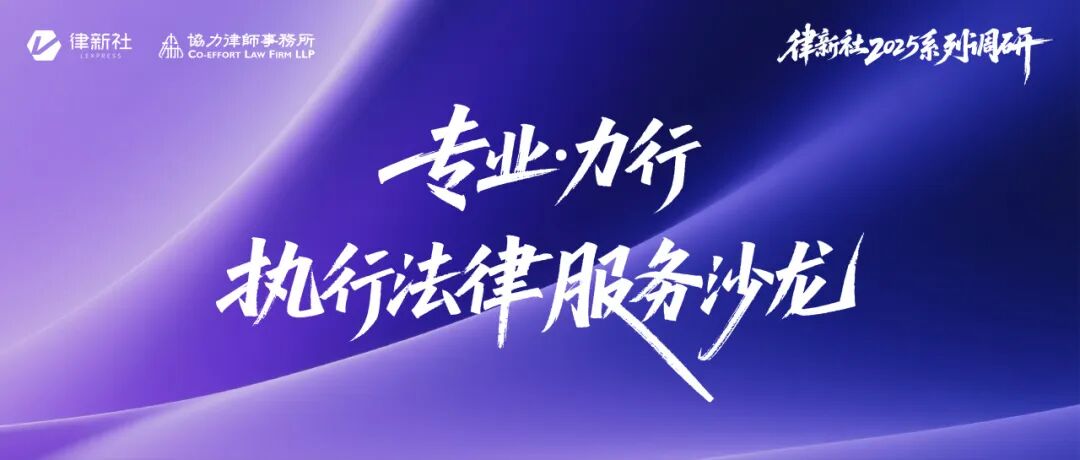 在热烈融洽的讨论氛围中,律新社2025系列调研“专业·力行——执行法律服务沙龙”圆满落幕。未来,律新社将持续搭建专业交流平台,发挥行业桥梁作用,及时分享前沿动态与建设性解决方案,汇聚专业声音,助力执行难题破译与攻克,共同维护法治正义与公平。“律新社2025年度风云榜-执行律师20佳”调研正在推进中,欢迎关注与参与!