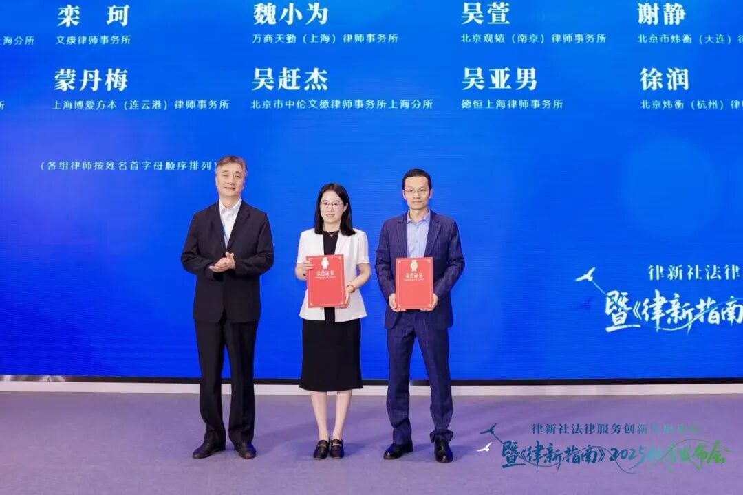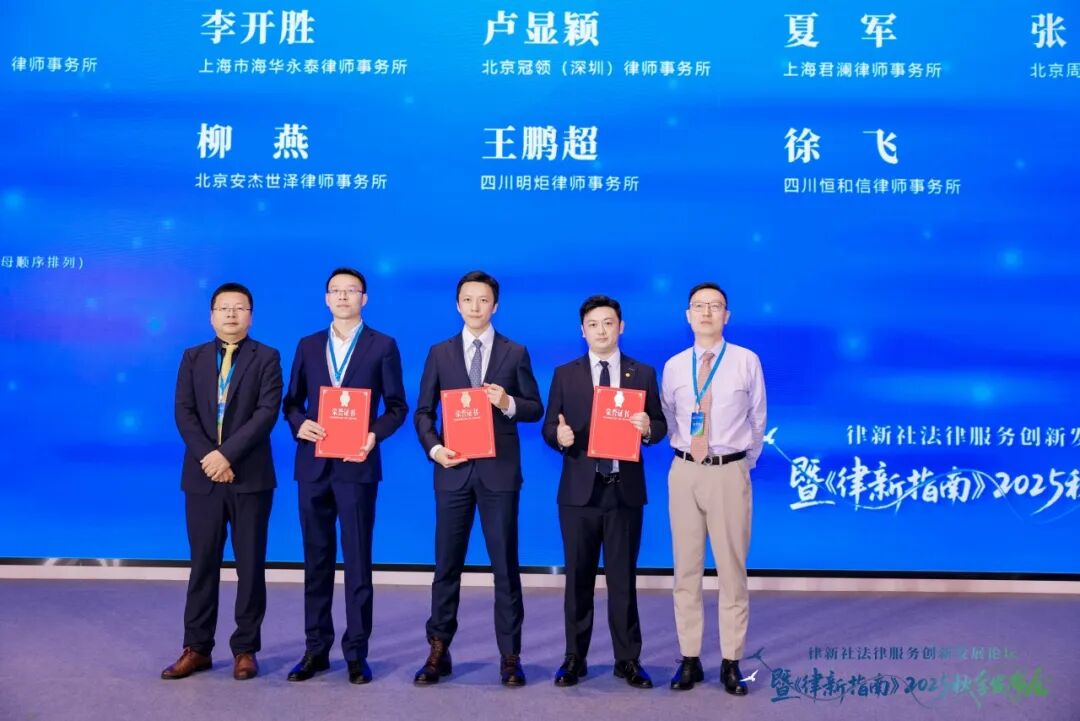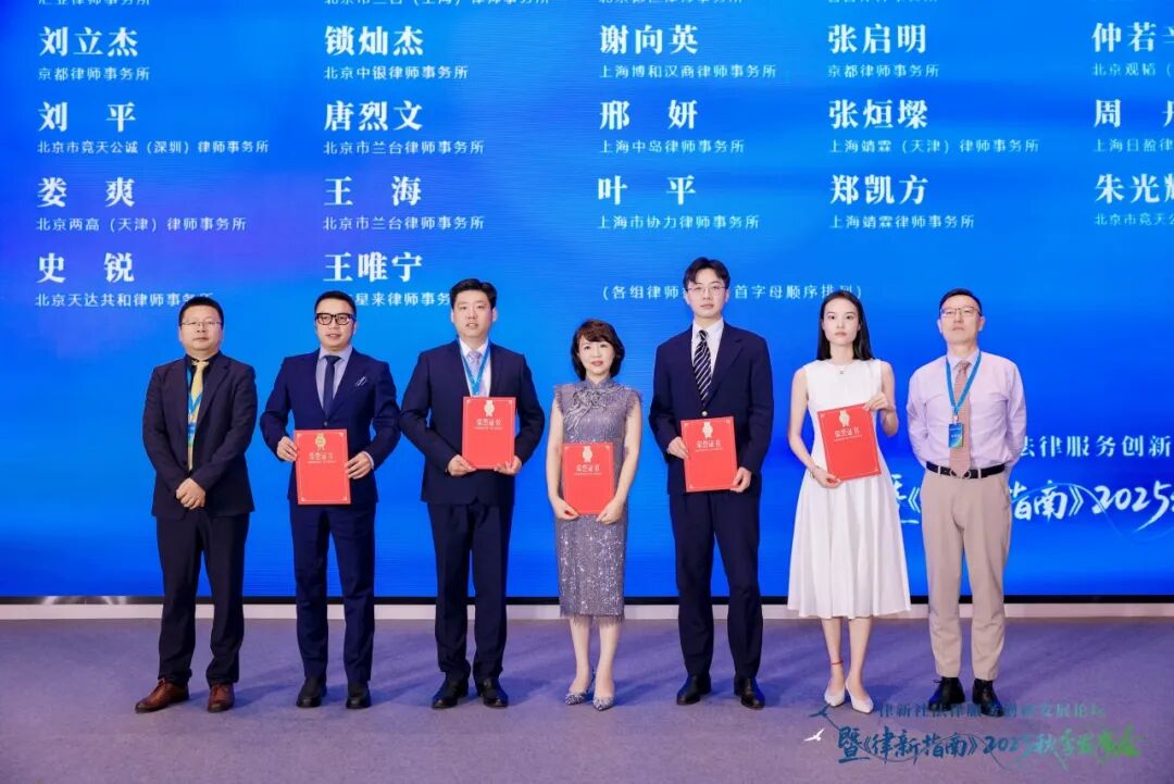 在现场嘉宾和线上观众的共同见证下,律新社2025年度《精品法律服务品牌指南》和《法律服务系列调研报告》(海事海商领域、商业犯罪领域、竞争法领域、文娱体育领域)及四大领域“品牌之星”荣誉律师、“品牌影响力律所”正式发布,富士康工业互联网副总裁兼首席法务官解辰阳、八马茶业法务总监谢依等嘉宾上台为获奖者颁奖。获奖律师和律所代表依次上台领奖。