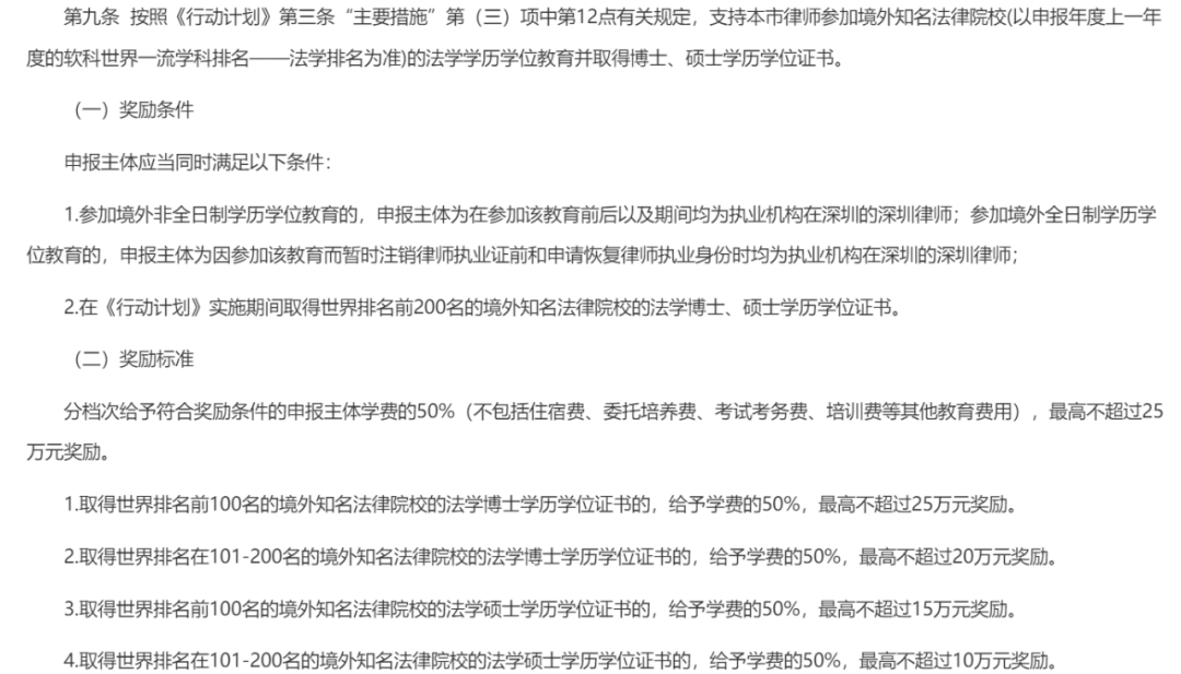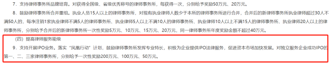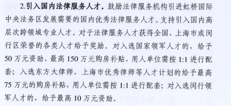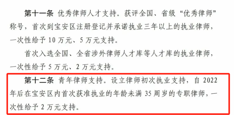 律师业补贴政策既是行业高质量发展的“催化剂”,也是区域法治竞争力的“晴雨表”。法律服务供给质量正日益成为衡量区域法治化营商环境的核心指标。好律师、名律所也成为各地竞相争夺的“黄金资源”。 近年来,各地政府不断抛出政策橄榄枝,致力于吸引培育精英法律人才,打造优质法律服务生态,形成了法律服务领域的“新质生产力”竞赛。 为从政策角度捕捉区域法律服务生态的发展机遇,律新社研究中心注意到,2019年-2025年,全国各地面向法律服务业推出的利好政策,已从单一的“输血式”资金扶持,演变为涵盖人才引育、机构扩张、专业深耕、国际协作的多元“造血体系”。在补贴金额上,广州、苏州、宁波等多地的律所落户奖励最高已达到500万元。这些政策不仅通过“真金白银”缓解行业痛点,更以阶梯式、差异化设计撬动区域法律市场格局重塑。 近年来,为推动法律服务业高质量发展,全国各地纷纷出台针对律师行业的补贴政策:或通过高额奖励吸引国内外知名律所落户,或激励本土律所规模化、专业化发展,或以学费补贴培育高端人才、涉外人才梯队……可以看到,政策红利的释放正在加速构建“引强育优”的行业新生态,进一步推动了中国律师业的全面发展与提升。律新社研究中心对近几年(2019年-2025年)全国各地面向法律服务业推出的利好政策进行了收集与分析: ▾ 上下滑动查看 ▾ 2019年-2025年各地出台的 法律服务业补贴激励政策汇总 人才引进与扶持类补贴 在律师行业专业化、国际化进程加速的背景下,人才结构性矛盾日益凸显:高端人才稀缺制约业务升级,青年律师流失加剧行业断层风险(点击查看:青年律师净流出 占比首次下降!青年律师“生存难”与律所“人才荒”怪圈如何打破?丨律新观察),涉外服务能力不足掣肘全球化布局。针对这一困局,各地政府通过分层设计人才引进与培养类补贴政策,逐步构建起“引才—育才—留才”的生态闭环,为律师业高质量发展注入长效动能。 ➢ 高端人才激励 高端人才激励以战略资源争夺为核心,通过资金与配套服务强化行业顶端竞争力。例如,上海市闵行区于2023年10月9日出台《虹桥国际中央法务区支持法律专业服务业人才发展实施意见》,明确支持引入国内高层次跨领域专业人才。对于法律服务人才获得全国、上海市或闵行区荣誉的各类人才给予奖励。对入选国家领军人才的,给予50万元资助、最高150万元购房补贴(用人单位需按1:1进行配套);入选“东方大律师”“上海市优秀律师”等人才计划的给予最高75万元的购房补贴(用人单位需按1:1进行配套)等。同时,也对优秀涉外律师人才进行补贴,对于入选“全国千名涉外律师”的给予最高150万元的购房补贴(用人单位需按1:1进行配套),并通过子女教育、医疗保障等综合服务吸引人才。 图源:《虹桥国际中央法务区支持法律专业服务业人才发展实施意见》 ➢ 青年律师扶持 青年律师扶持主要聚焦执业初期保障,以持续性投入缓解生存压力,夯实人才储备基底。例如,慈溪市在2023年10月9日发布的《关于加快推进慈溪市律师业高质量发展的实施办法》提出,自2023年开始,每年安排专项经费10万元用于律师业培育扶持。对年龄在35周岁以下初次在慈执业的律师,自获准执业当月起3年内,给予每月1200元补助。对接收实习律师的律师事务所,实习律师实习期满经考核合格的,对该律师事务所按每人8000元标准给予一次性补助,以降低青年律师执业初期压力。2023年8月5日,深圳市宝安区人民政府出台《深圳市宝安区促进律师行业高质量发展若干措施》,明确设立律师初次执业支持,自2022年后在宝安区内首次获准执业的年龄未满35周岁的专职律师,一次性给予2万元支持,推动人才本地化留存。 图源:《深圳市宝安区促进律师行业高质量发展若干措施》 律所发展与规模化激励补贴 律所规模化与专业化是提升律所综合实力的关键。地方政府一方面通过落户奖励、规模扩容支持等机制,吸引品牌大所入驻,助推区域本土律所快速发展壮大;另一方面聚焦涉外、知识产权等战略赛道给予专项扶持,以资金倾斜引导律所专业化分工,推动律所从“大而全”向“精而强”转型。这种“输血”与“定向灌溉”并行的策略,不仅加速行业资源向高价值环节流动,更重塑了区域法律服务生态的底层逻辑,为律所可持续发展提供结构性支撑。 ➢ 律所落户与扩张 2024年6月1日,《深圳市前海深港现代服务业合作区管理局关于支持前海深港国际法务区高端法律服务业集聚的实施办法(修订)》(以下简称《办法》)正式施行,有效期3年。《办法》规定,对符合条件的法律服务机构给予一次性30万元至200万元不等的落户支持。其中,截至申报公告发布之日,近3年登上国际法律评级机构钱伯斯《钱伯斯法律指南》或《法律500》榜单的境外律师事务所与境内的全国优秀律师事务所在前海合作区合作设立的粤港澳合伙联营律师事务所、中外律师事务所联营办公室,可以申请一次性200万元的落户支持。同时为鼓励法律服务机构集聚发展,《办法》规定,新设立或新迁入满一年的境内律师事务所,上一年度律师执业人数达到10人以上的,给予10万元一次性支持;在前海合作区实际经营的律师事务所被评为“广东优秀律师事务所”或律师执业人数达到50人以上的,给予一次性50万元支持;被评为“全国优秀